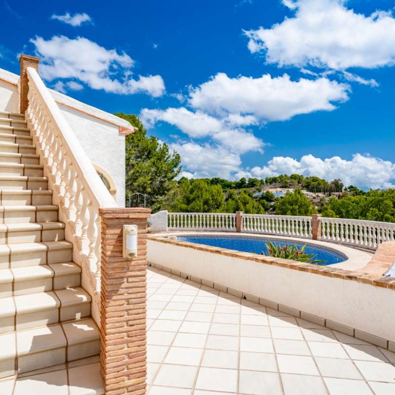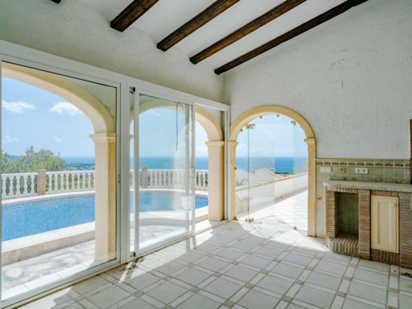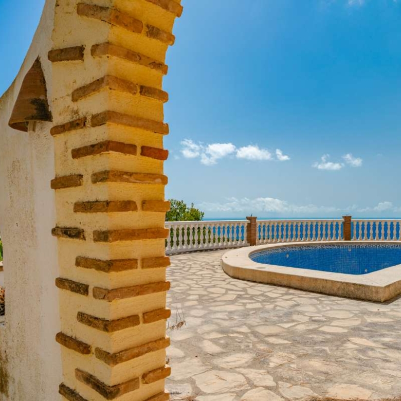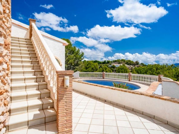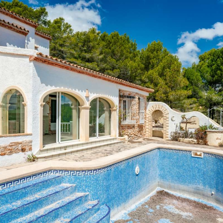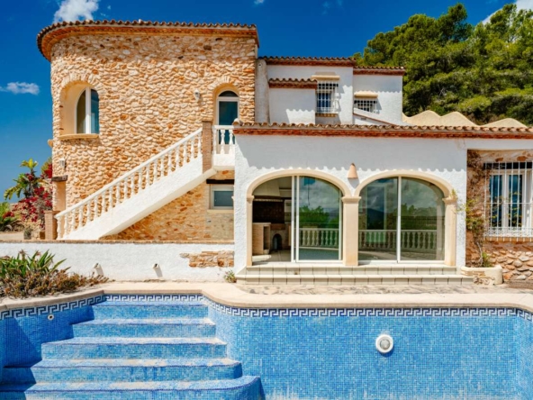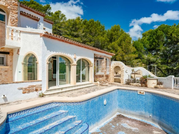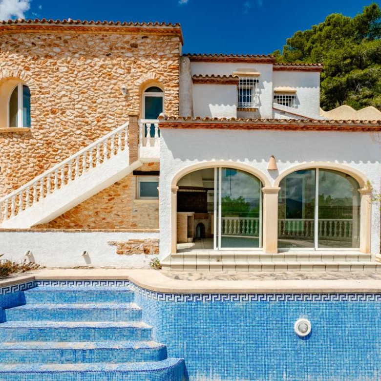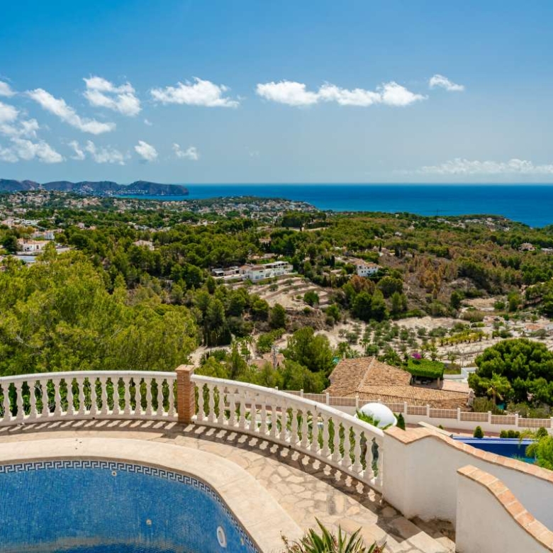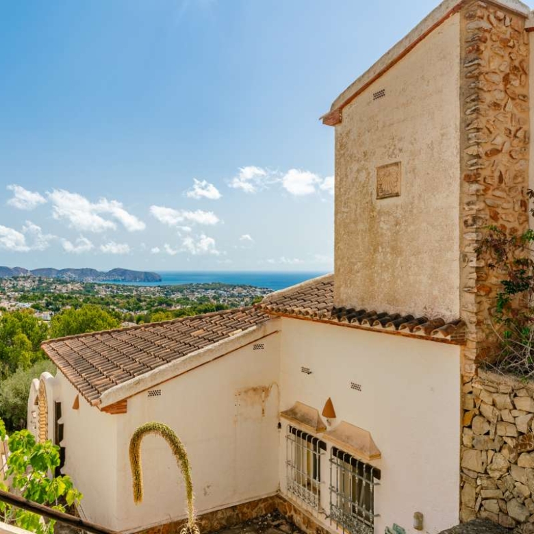 Desde el momento que pones un pie en esta propiedad, quedas impresionado de las maravillosas vistas hacia toda la costa desde Moraira hasta Calpe. Una preciosa vila con encanto con una superficie aproximada de 250 m². Se encuentra construida sobre una amplia y plana parcela de 1600 m². Está distribuida en salón con chimenea, comedor, cocina americana, 3 amplos dormitorios, 3 baños. Equipada con calefacción central por radiadores, aire acondicionado (frío-calor). En el exterior, desde la maravillosa piscina se contemplan las increíbles vistas sobre toda la costa. Además cuenta con un apartamento individual con 1 dormitorio y 1 baño. La playa más cercana es la tranquila Playa de La Fustera, en Benissa Costa.