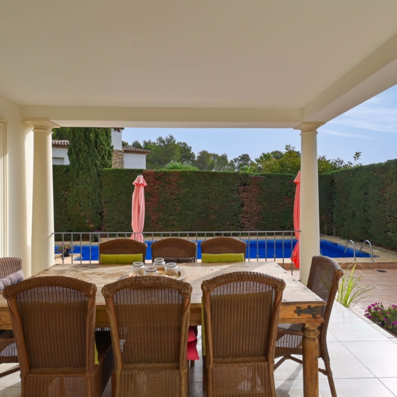 Desde el primer momento, esta villa destaca por su moderna arquitectura y su atención al detalle. Los acabados de alta calidad y las hermosas vistas crean un ambiente acogedor. El corazón de esta propiedad es su amplia piscina privada de 9 x 4,5 metros, ubicada en un soleado jardín rodeado de una espaciosa terraza. Aquí podrá disfrutar de un refrescante baño a diario o relajarse en una de las cómodas tumbonas. Para los amantes de la cocina al aire libre, hay una acogedora área de barbacoa donde se pueden pasar noches agradables. A tan solo unos minutos en coche se encuentra la costa, donde podrá disfrutar de hermosas playas y pintorescas calas, a menudo rodeadas de restaurantes locales que ofrecen lo mejor de la gastronomía española.