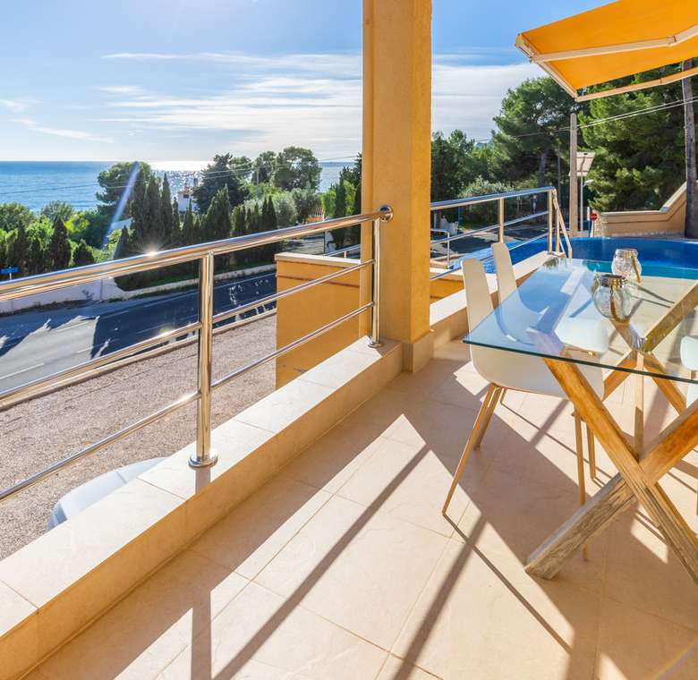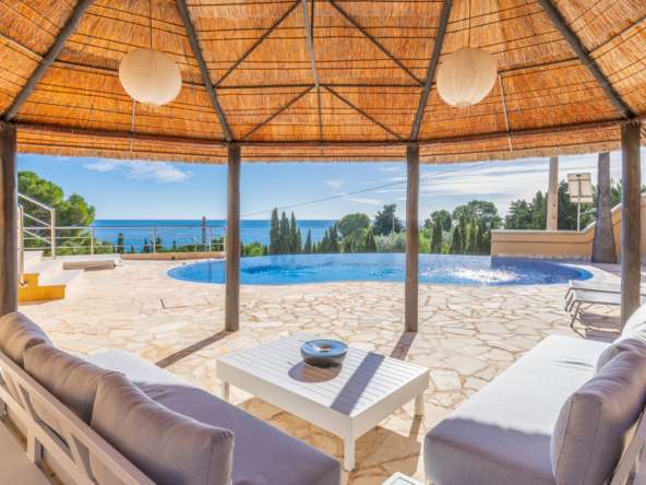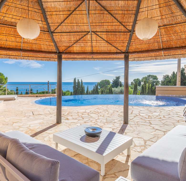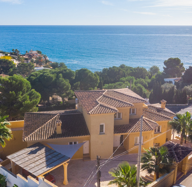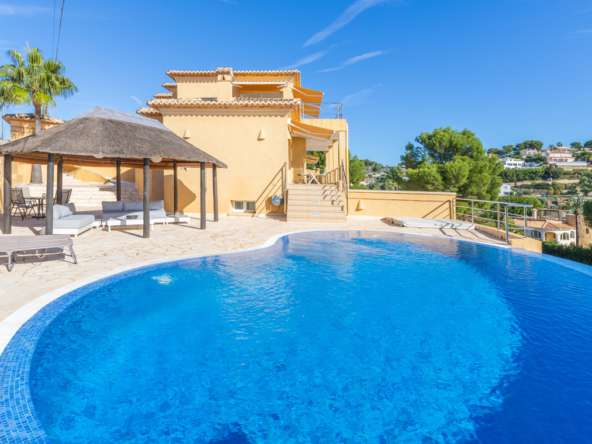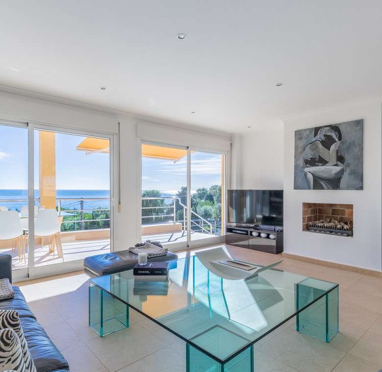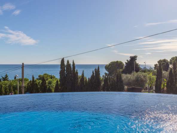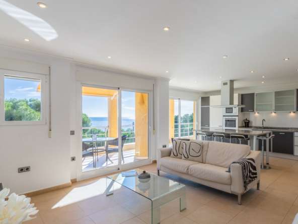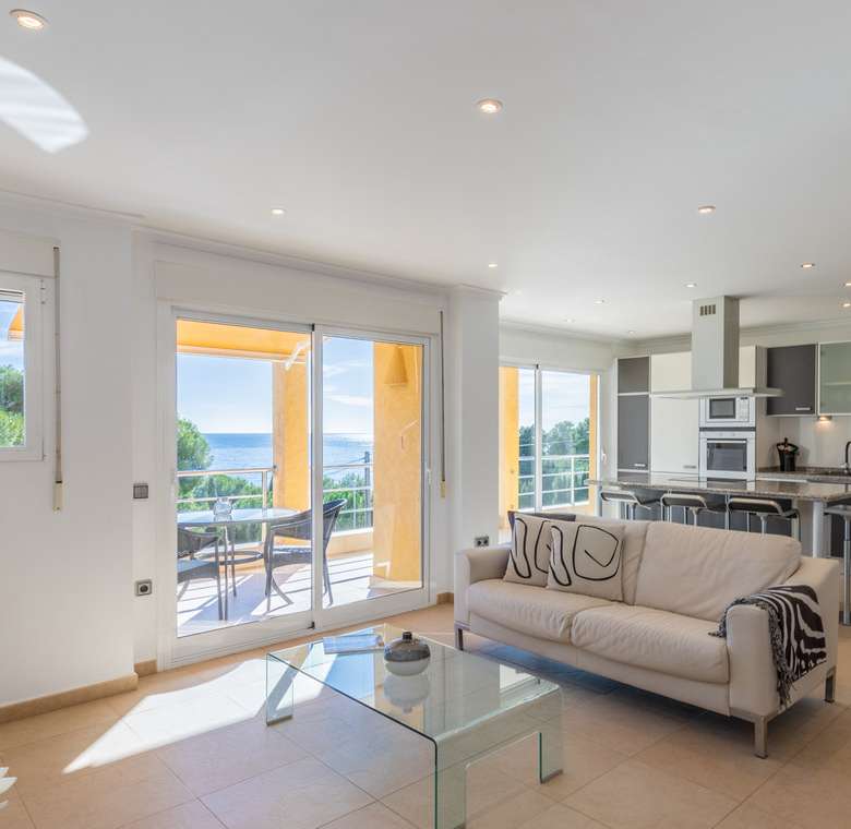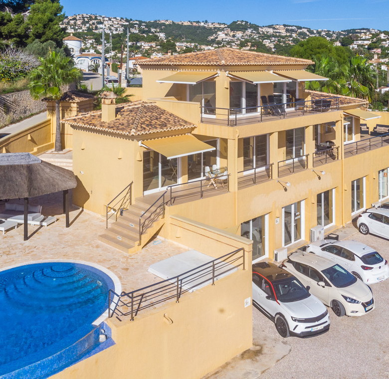 Destacan las increíbles vistas panorámicas al mar desde la mayoría de las habitaciones y desde todas las terrazas, gozando de mucha privacidad. Desde la estupenda zona exterior con pergola de madera, donde podremos protegernos del calor estival y refrescarnos en la fabulosa piscina infinity imaginando que estamos flotando el mismo mar Mediterráneo. El salón principal es muy espacioso, consta de una sala de estar de planta abierta con chimenea, comedor y cocina moderna totalmente equipada. Arriba encontramos la suite principal con las mejores vistas de toda la casa, con acceso exterior a una terraza privada y un amplio baño en suite con ducha y bañera de hidromasaje. El alojamiento para invitados consta de una sala de estar de planta abierta y una cocina totalmente equipada. Tiene dos habitaciones dobles con baño y una terraza privada y zona de descanso.