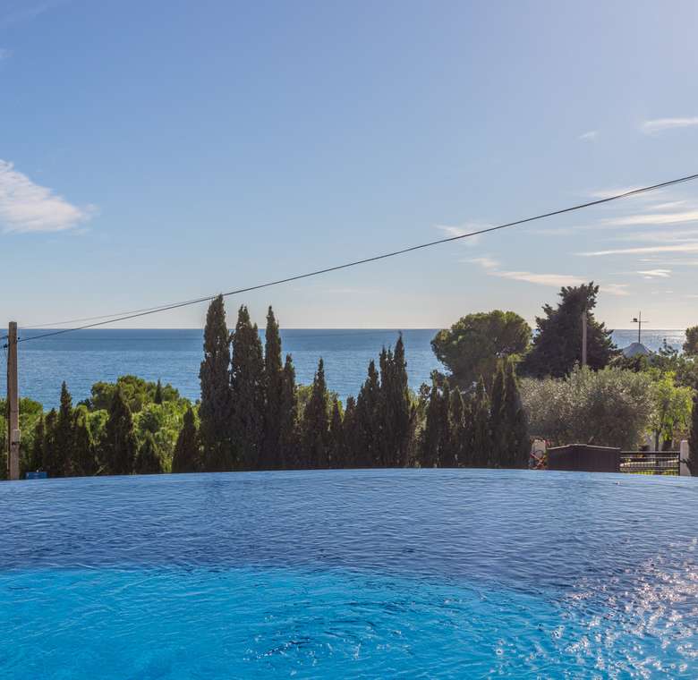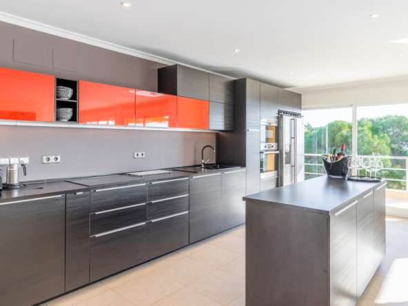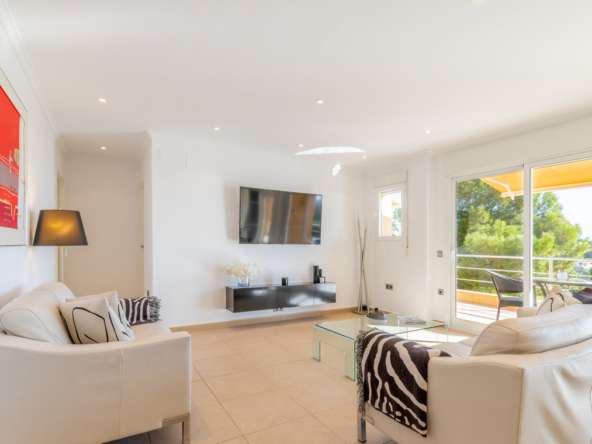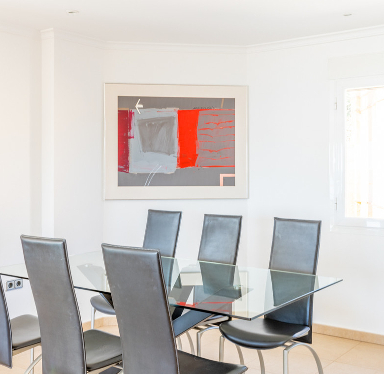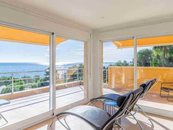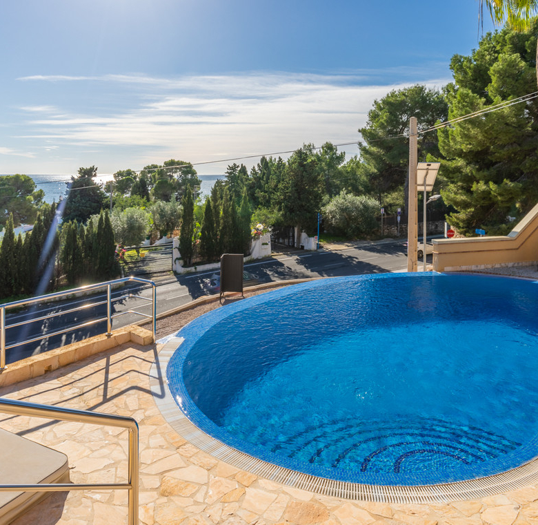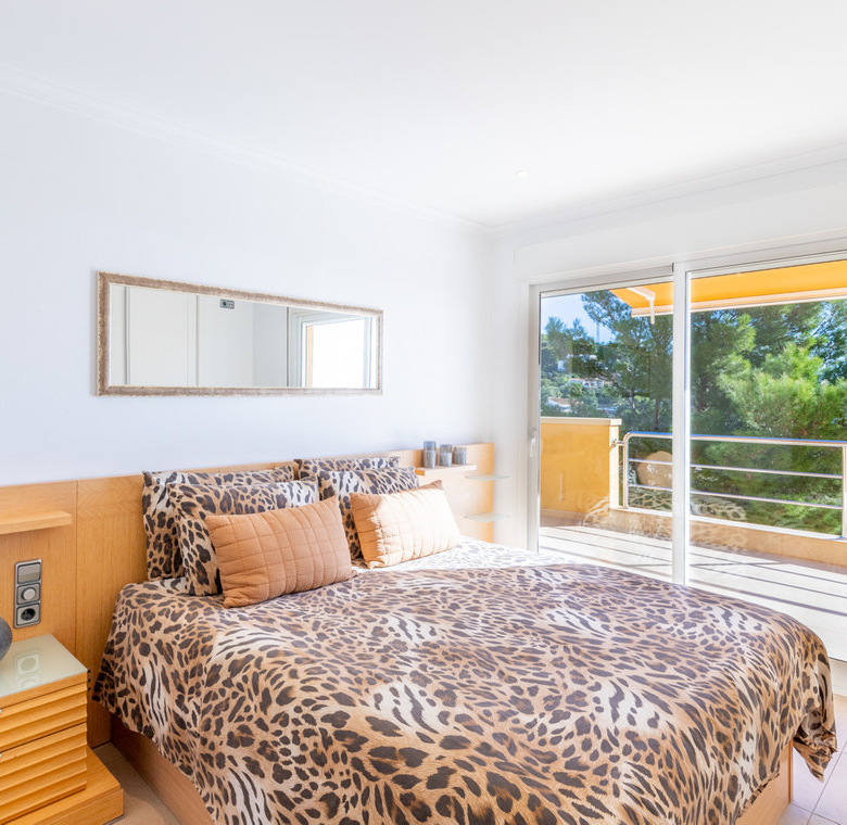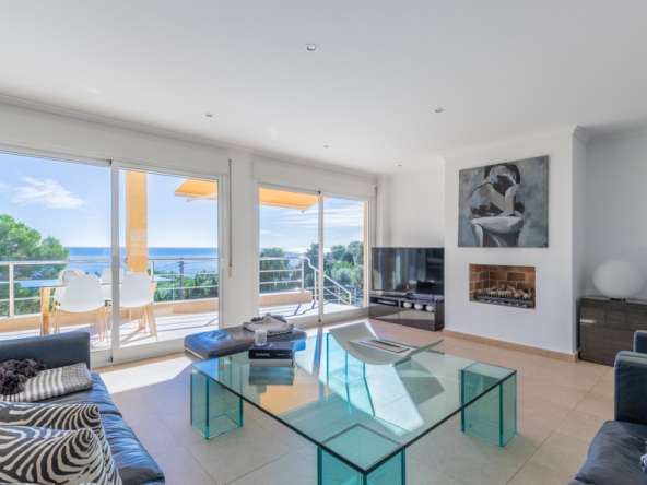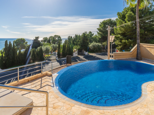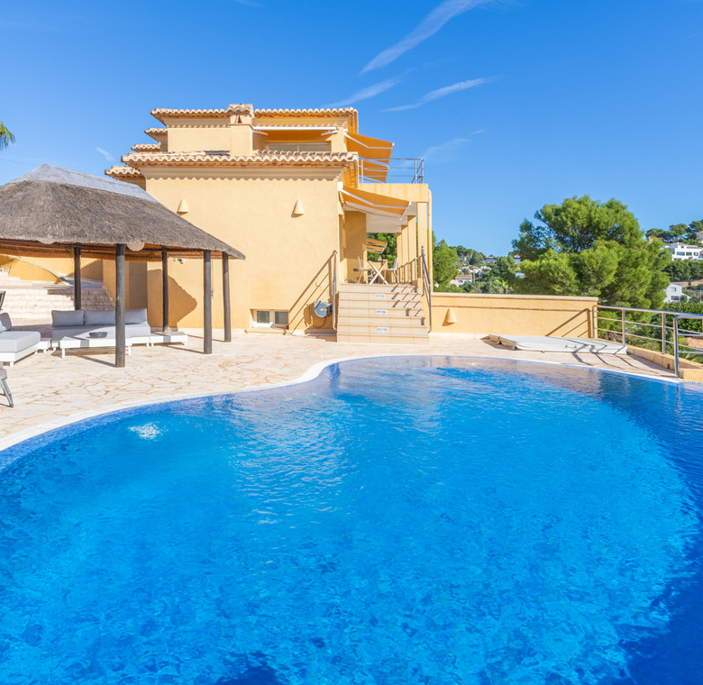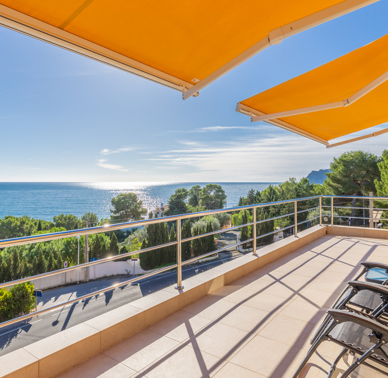 Destacan las increíbles vistas panorámicas al mar desde la mayoría de las habitaciones y desde todas las terrazas, gozando de mucha privacidad. Desde la estupenda zona exterior con pergola de madera, donde podremos protegernos del calor estival y refrescarnos en la fabulosa piscina infinity imaginando que estamos flotando el mismo mar Mediterráneo. El salón principal es muy espacioso, consta de una sala de estar de planta abierta con chimenea, comedor y cocina moderna totalmente equipada. Arriba encontramos la suite principal con las mejores vistas de toda la casa, con acceso exterior a una terraza privada y un amplio baño en suite con ducha y bañera de hidromasaje. El alojamiento para invitados consta de una sala de estar de planta abierta y una cocina totalmente equipada. Tiene dos habitaciones dobles con baño y una terraza privada y zona de descanso.