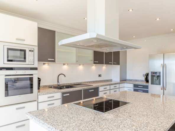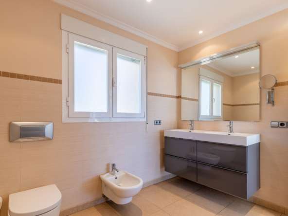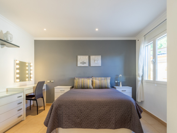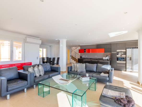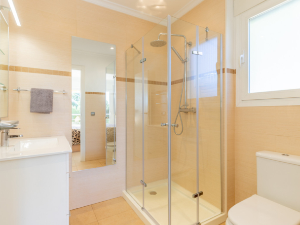 La villa dispone de calefacción por suelo radiante, aire acondicionado frío/calor, doble acristalamiento, persianas, toldos y muchos otros extras.