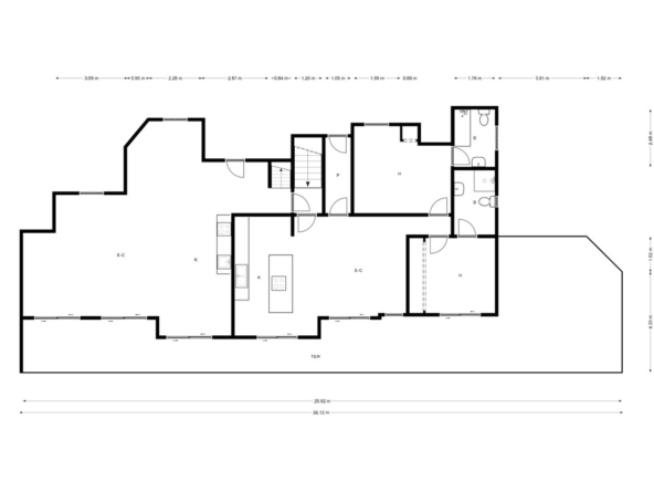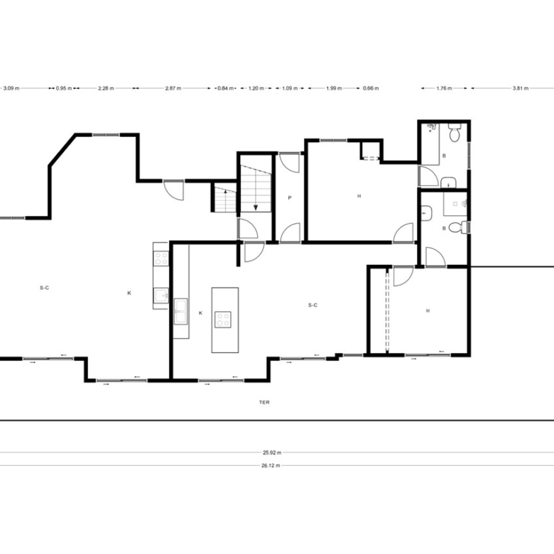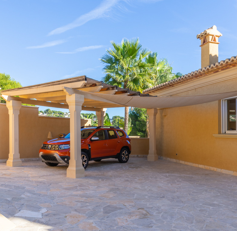 Al ingresar a la propiedad a través de puertas eléctricas, o por la entrada peatonal, encontramos un amplio estacionamiento y acceso a la vivienda principal y al alojamiento de invitados. Ambos espacios están conectados internamente, pudiéndose convertir fácilmente en un solo espacio, si se desea, a posteriori.