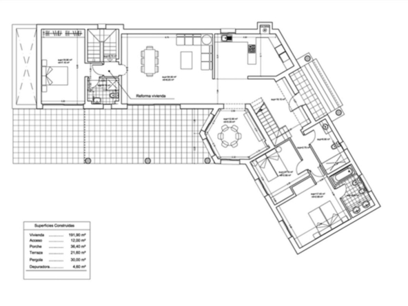 Maravillosa Villa en Benissa de estilo mediterráneo. Consta de dos plantas, y en el exterior un bonito jardín con piscina privada y barbacoa. Su construcción de 264,80m² se encuentra distribuida en 4 dormitorios, 4 baños, amplio salón comedor, cocina totalmente equipada, y amplia terraza con vistas panorámicas. La casa está dotada de aire acondicionado y sistema de calefacción por suelo radiante.