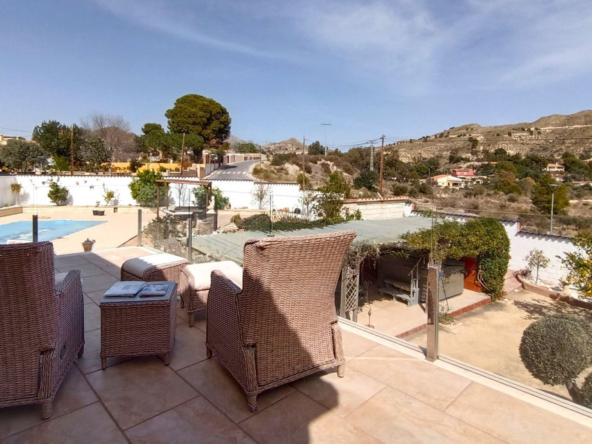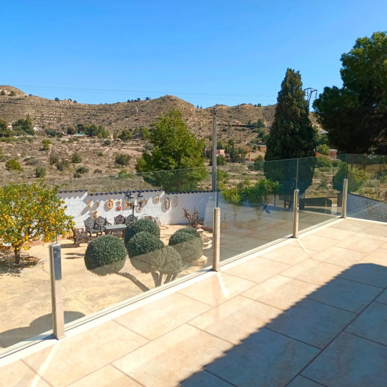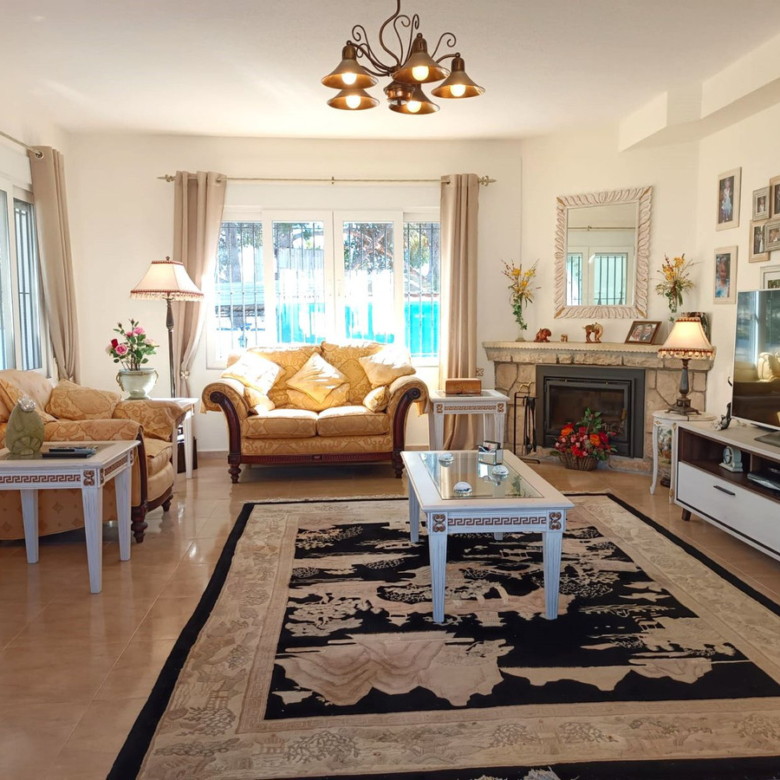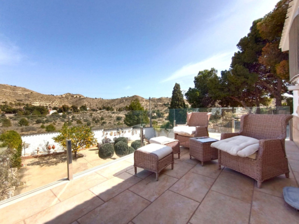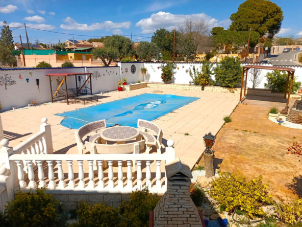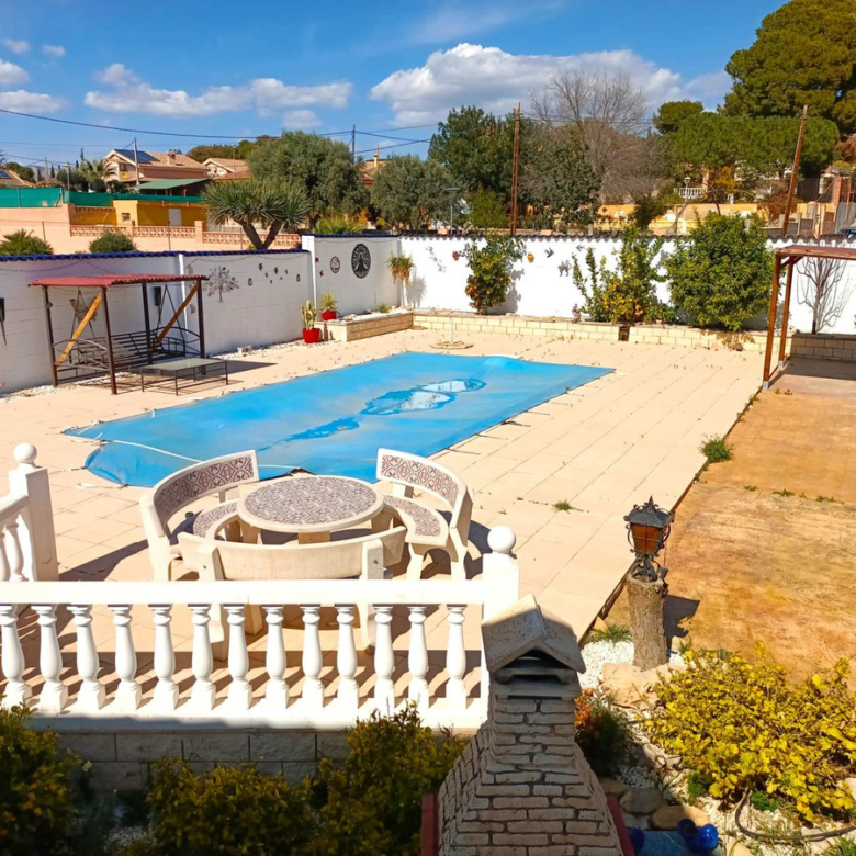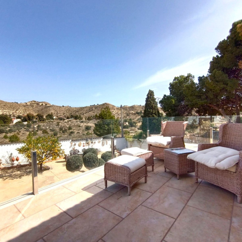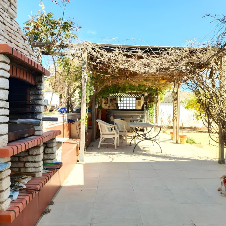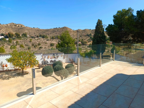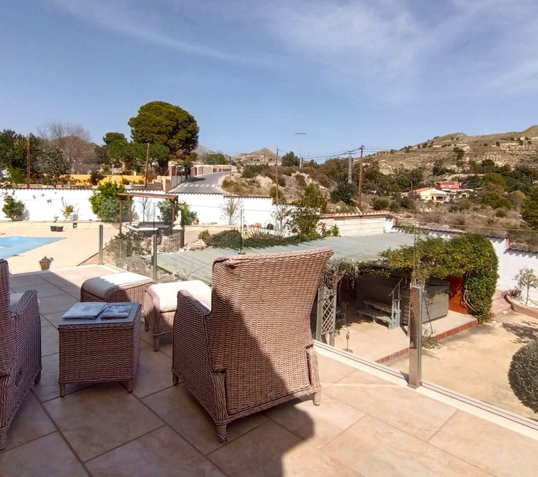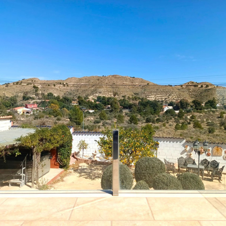 Chalet renovado ubicado en una zona residencial privilegiada de Busot (HOYA DE LOS PATOS), con impresionantes vistas a la montaña y rodeado de tranquilidad. La propiedad cuenta con una amplia parcela de 1.089 m2, cuidadosamente ajardinada como un jardín privado. La sólida construcción se distribuye en 2 plantas, con un total de 140 m2. La planta baja ofrece una terraza cubierta y acristalada, un amplio salón-comedor con chimenea, una cocina independiente completamente equipada con acceso al jardín, 2 dormitorios dobles y un baño completo. En la planta superior, hay 2 dormitorios dobles adicionales, 2 baños y una gran terraza descubierta con vistas a la montaña. La propiedad incluye una variedad de árboles frutales, una piscina independiente, jacuzzi, zona de barbacoa con cocina y varios espacios de almacenamiento. Las comodidades técnicas incluyen aire acondicionado en toda la casa y calefacción central de gas. El chalet goza de proximidad conveniente a servicios esenciales y excelente conectividad.
