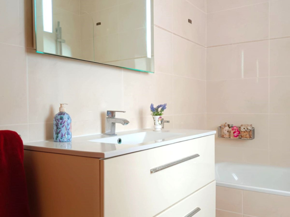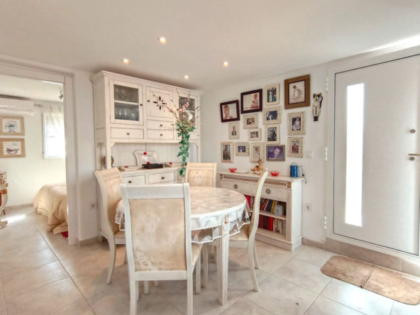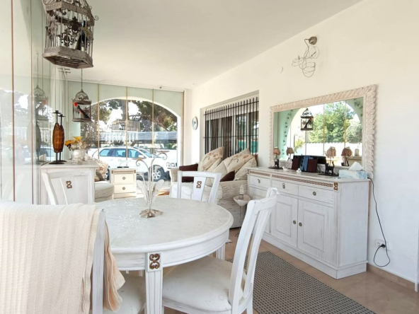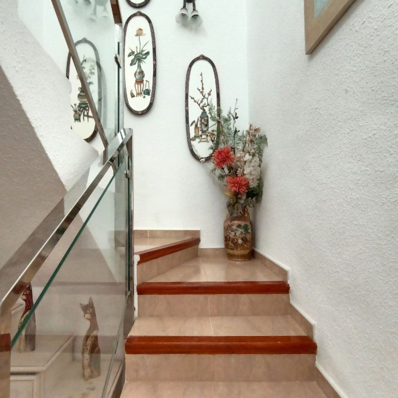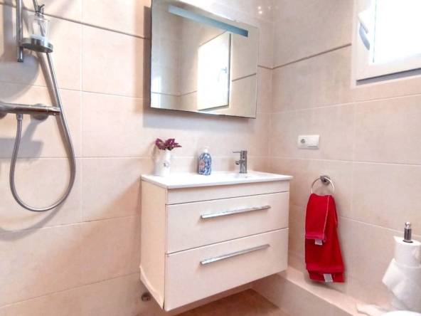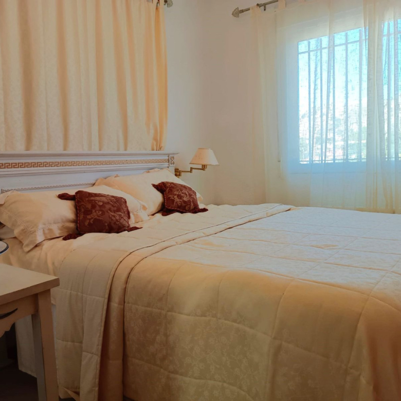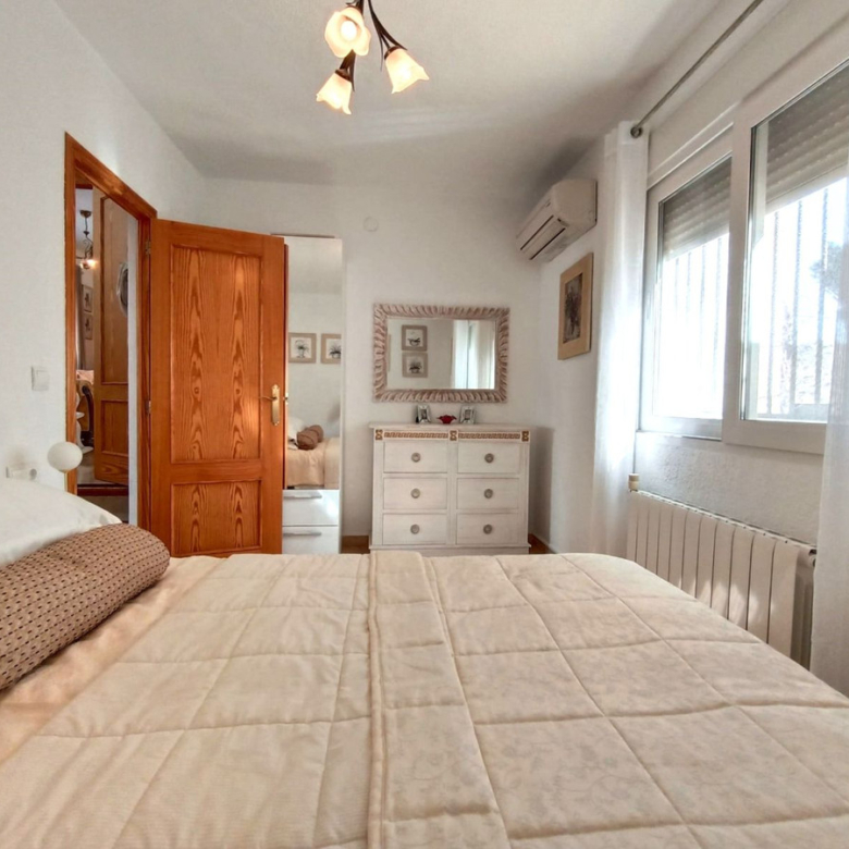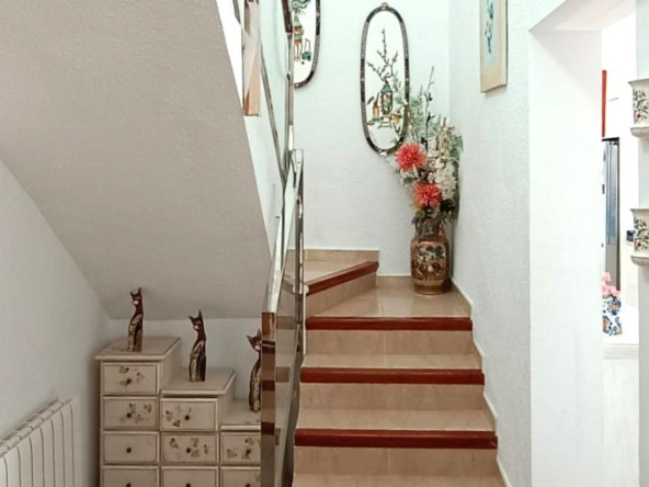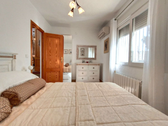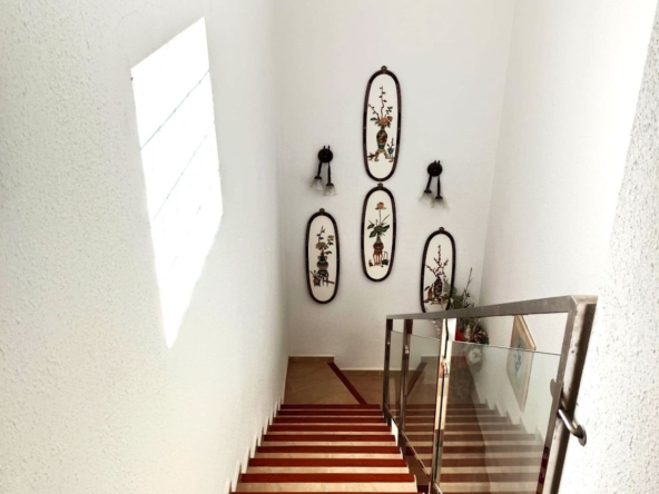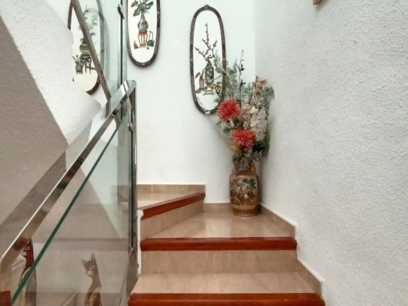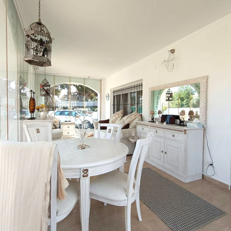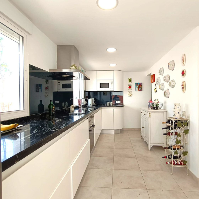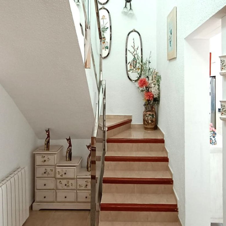 Chalet renovado ubicado en una zona residencial privilegiada de Busot (HOYA DE LOS PATOS), con impresionantes vistas a la montaña y rodeado de tranquilidad. La propiedad cuenta con una amplia parcela de 1.089 m2, cuidadosamente ajardinada como un jardín privado. La sólida construcción se distribuye en 2 plantas, con un total de 140 m2. La planta baja ofrece una terraza cubierta y acristalada, un amplio salón-comedor con chimenea, una cocina independiente completamente equipada con acceso al jardín, 2 dormitorios dobles y un baño completo. En la planta superior, hay 2 dormitorios dobles adicionales, 2 baños y una gran terraza descubierta con vistas a la montaña. La propiedad incluye una variedad de árboles frutales, una piscina independiente, jacuzzi, zona de barbacoa con cocina y varios espacios de almacenamiento. Las comodidades técnicas incluyen aire acondicionado en toda la casa y calefacción central de gas. El chalet goza de proximidad conveniente a servicios esenciales y excelente conectividad.