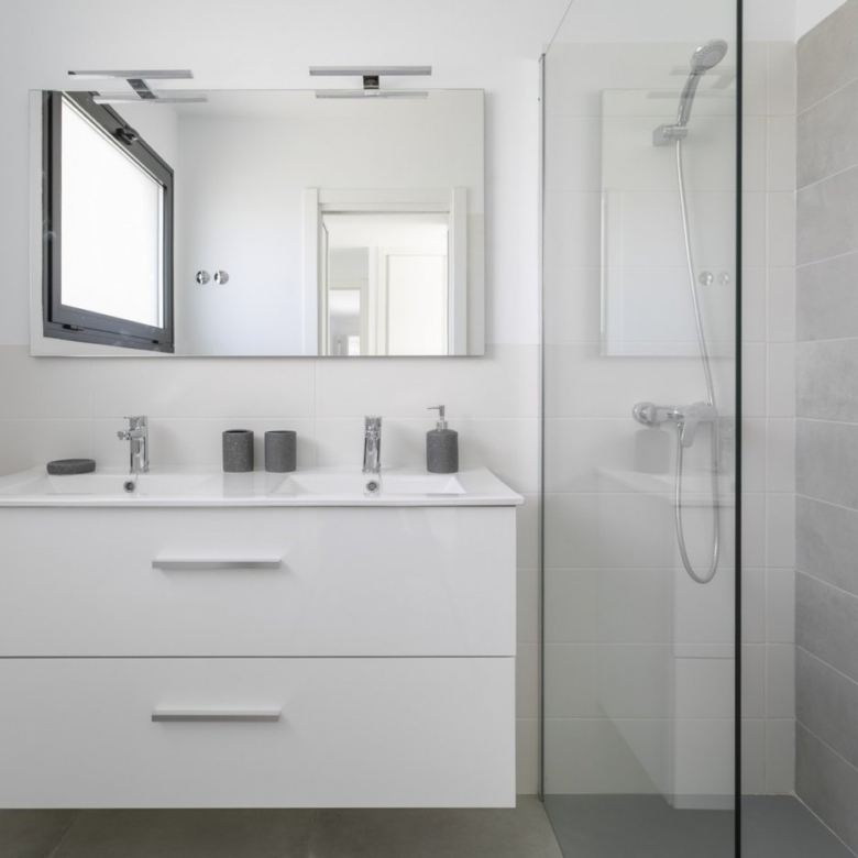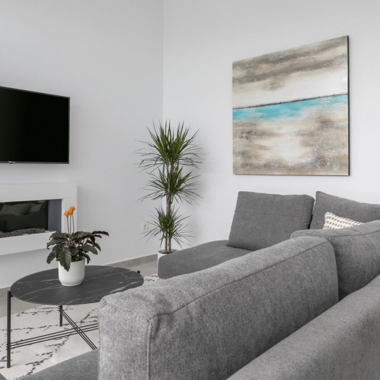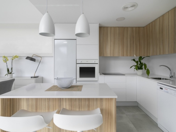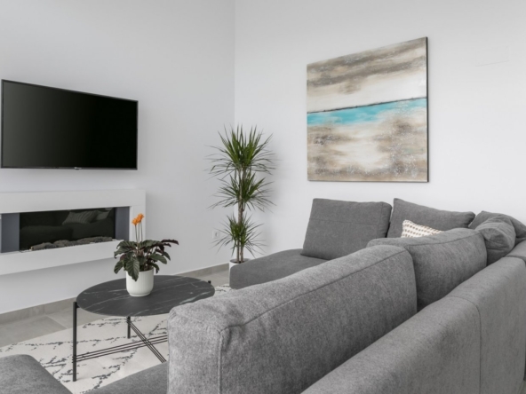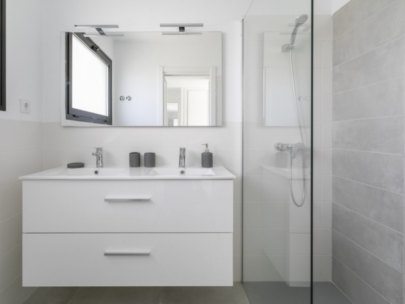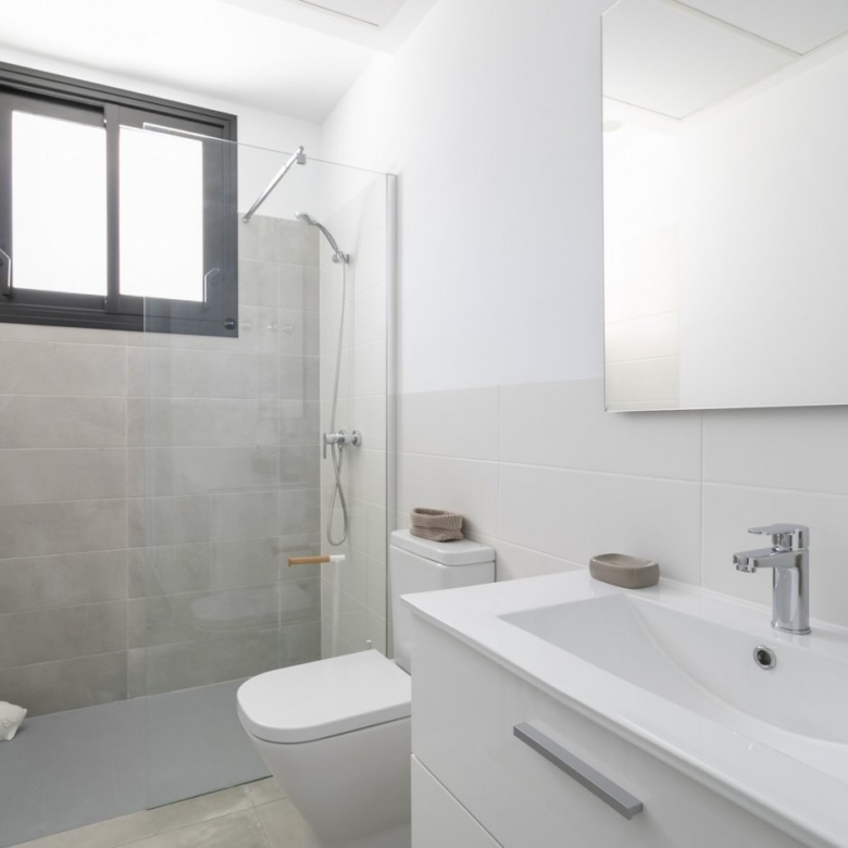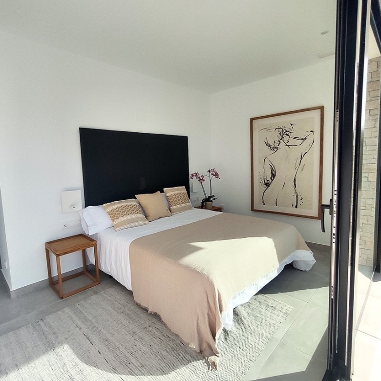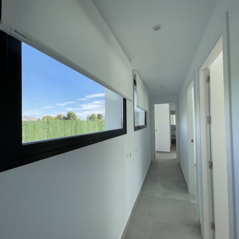 Ventanas de aluminio negro mate, persianas motorizadas, puerta de entrada a la vivienda acorazada, puertas de interiores lacadas en blanco, sistema de aerotermia para producción de agua caliente, encimera de cuarzo (silestone) en cocina, electrodomésticos incluidos, preinstalación de aire acondicionado por conductos.