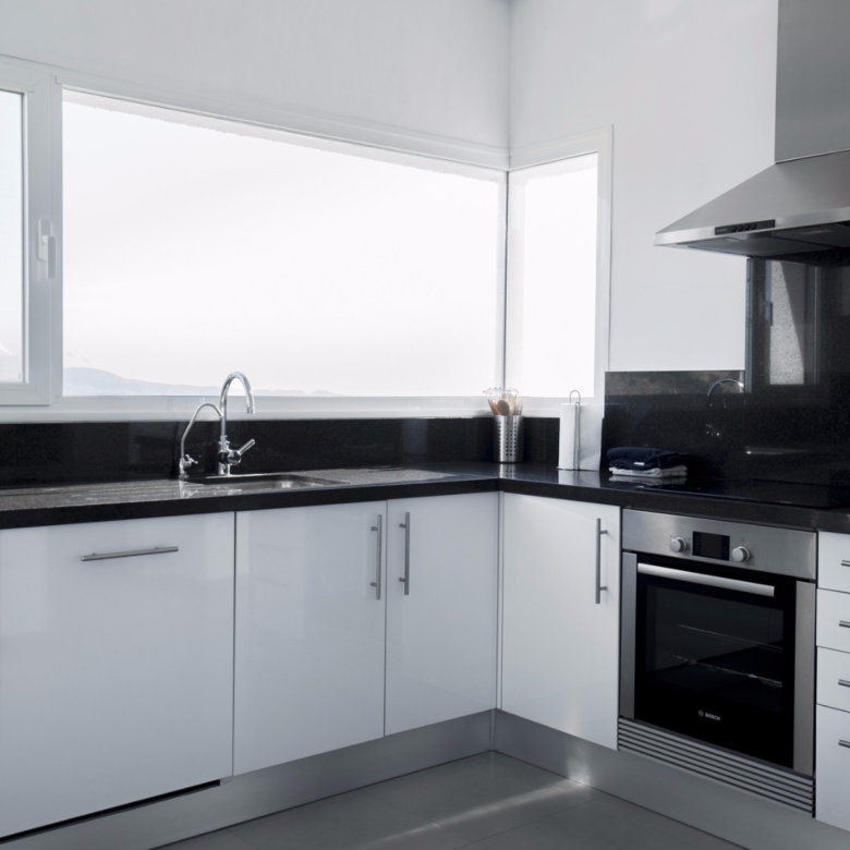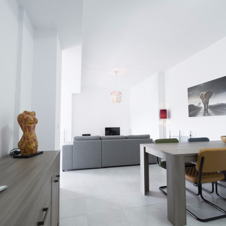 Planta baja:Un amplio y luminoso salón invita con un cómodo sofá esquinero y un elegante comedor de madera con sillas de lujo. La cocina moderna está completamente equipada con una placa eléctrica de 4 fuegos, horno, nevera, congelador y lavavajillas. Además, en este nivel hay un amplio dormitorio y un baño con ducha.
