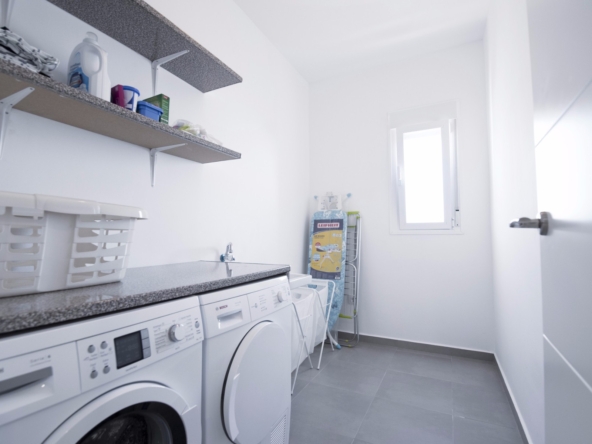 Instalaciones adicionales:La villa dispone de una lavandería con lavadora y secadora, calefacción por suelo radiante con bomba de calor en varios niveles y aire acondicionado en toda la vivienda.