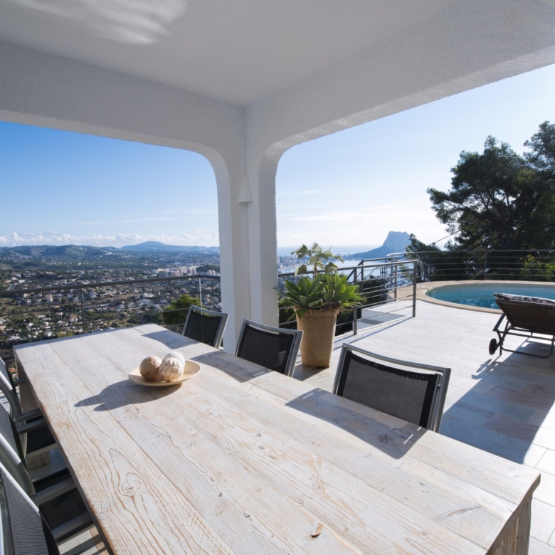 Esta propiedad le ofrece una oportunidad única de convertirse en el propietario de una impresionante villa con vistas panorámicas que rara vez se encuentran. Durante el día, disfrute de las espectaculares vistas al azul celeste del mar Mediterráneo y al encantador pueblo costero de Calpe, mientras que por la noche, las luces brillantes crean un escenario mágico. Los propietarios han decorado la villa con gran atención al detalle, con un diseño moderno y elegante como protagonista. Esta villa con piscina privada climatizada es ideal para familias que buscan espacio, comodidad y lujo.