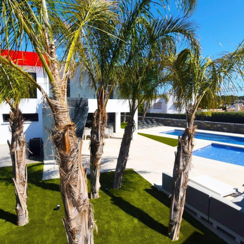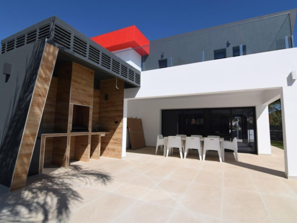 ¡Bienvenido a su nuevo paraíso! Esta espectacular villa moderna, distribuida en dos plantas, es el sueño hecho realidad que siempre ha estado buscando. Con seis amplios dormitorios y cuatro cuartos de baño ensuite (más un cuarto de baño familiar), hay espacio de sobra para toda la familia o tus amigos más íntimos. La cocina abierta conecta perfectamente con un luminoso salón donde nunca faltarán las risas. En la planta superior, tres dormitorios tienen acceso directo a una impresionante terraza de 41 m²; ¡perfecta para disfrutar del amanecer mientras saborea su café!~~El exterior le cautivará: relájese junto a una piscina privada de ensueño u organice barbacoas bajo los árboles en preciosos jardines equipados con riego automático. Además, dispondrá de un amplio aparcamiento para hasta cuatro coches e incluso un garaje cerrado.~~Con persianas eléctricas e instalación completa de calefacción/refrigeración mediante aire acondicionado centralizado… ¡el confort está garantizado todo el año! Y no olvidemos su increíblemente conveniente ubicación cerca de la playa de La Fustera (a sólo 1 km) y de la playa de La Fossa (a 1,9 km). Esta vivienda combina el lujo moderno sin renunciar al estilo ni a la comodidad; ¡venga a disfrutar de lo mejor del Mediterráneo!