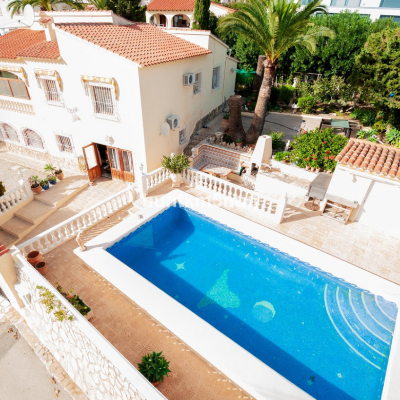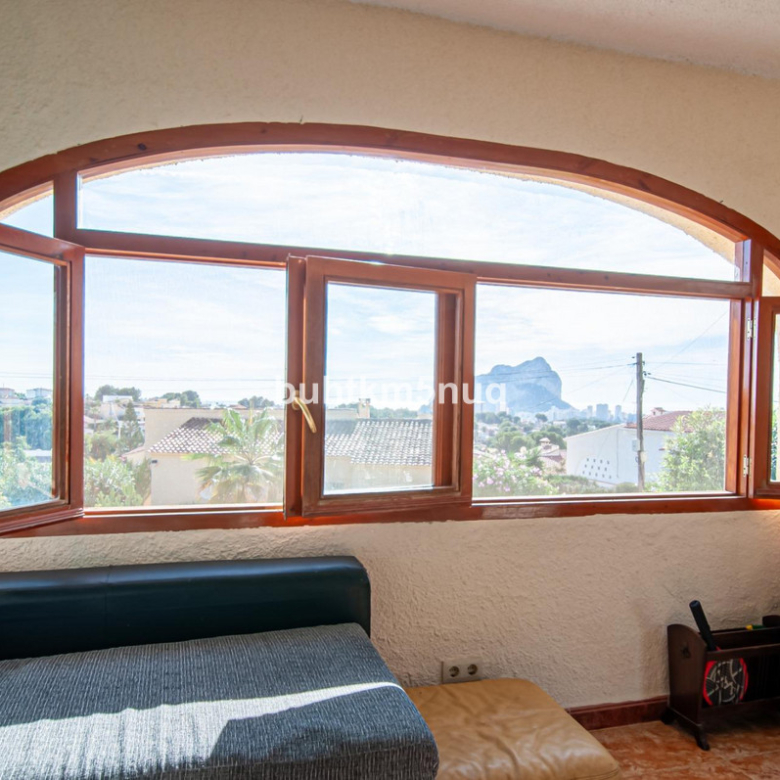Bonita villa luminosa, amplia ,para poder disfrutar de todas las comodidades.~Vistas al majestuoso Peñon de Ifach desde muchos ángulos de la casa y también al mar desde la planta de arriba.~Precioso jardín con barbacoa y zonas de sol y sombra para poder desconectar y disfrutar del maravilloso clima Mediterráneo.~Así mismo encontrarás un trastero y zona de lavandería y dos cuartos polivalentes.~En la planta baja , a la altura del jardín y la piscina encontrarás un apartamento de invitados con aire acondicionado y entrada independiente. La planta baja necesita reforma.~No dejes de visitarlo, te sorprenderán todas sus posibilidades…