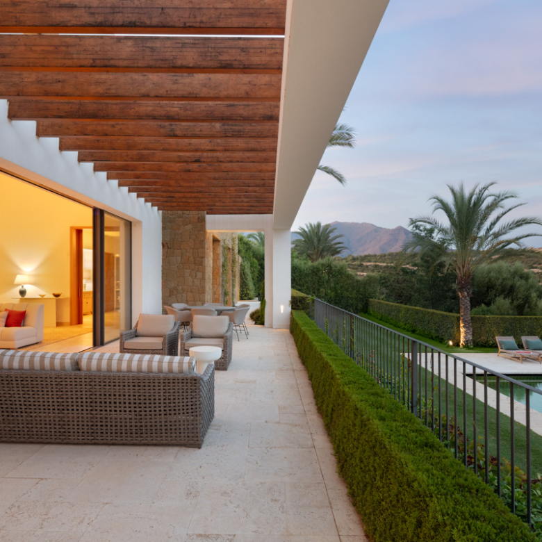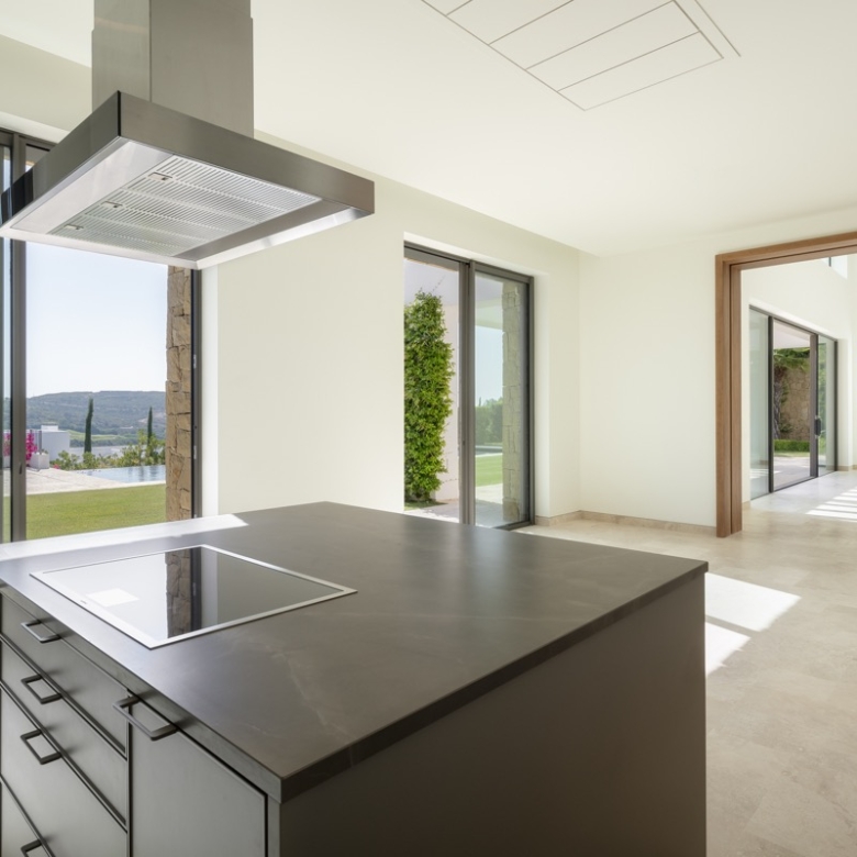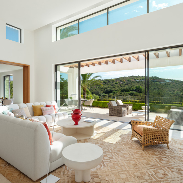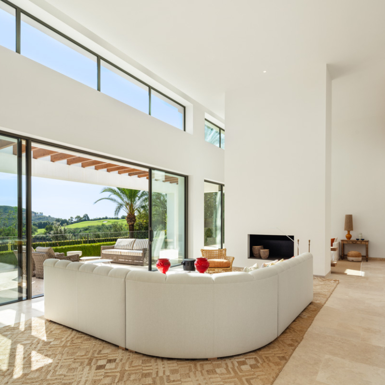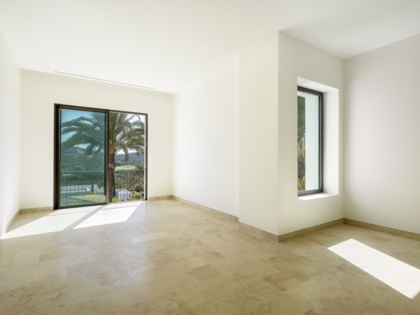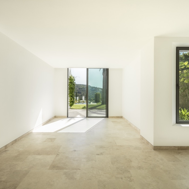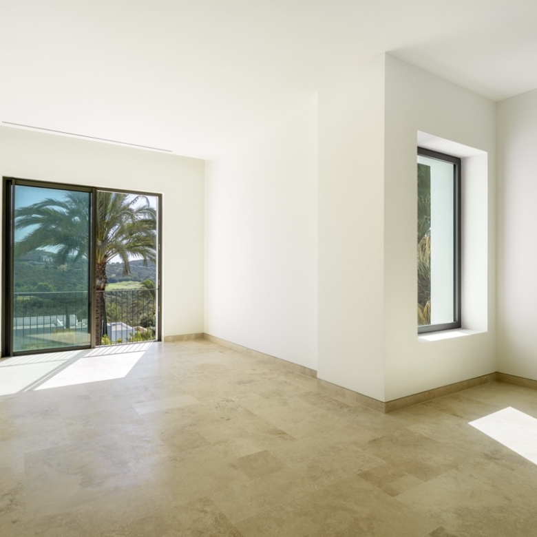 El interior de las villas en Casares está cuidadosamente diseñado para ofrecer un ambiente acogedor y sofisticado. Los suelos de gres porcelánico aportan un toque de elegancia y son fáciles de mantener. La inclusión de electrodomésticos modernos y un sistema de domótica avanzada garantiza una experiencia de vida cómoda y eficiente. Cada villa está equipada con aire acondicionado y calefacción por suelo radiante, asegurando un clima perfecto durante todo el año. Los armarios empotrados proporcionan un amplio espacio de almacenamiento, manteniendo el orden y la organización en cada habitación. La distribución de las villas, con cinco o seis dormitorios y cinco baños, está pensada para maximizar el confort y la privacidad de sus habitantes.