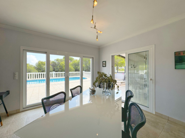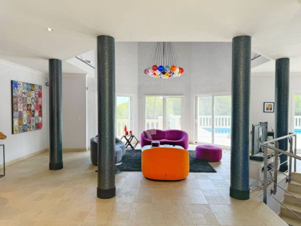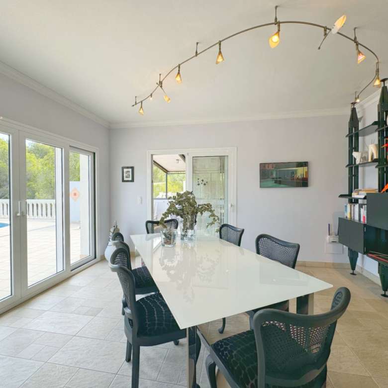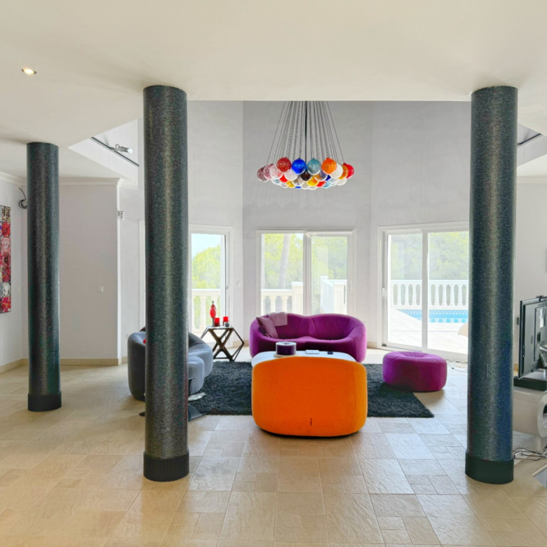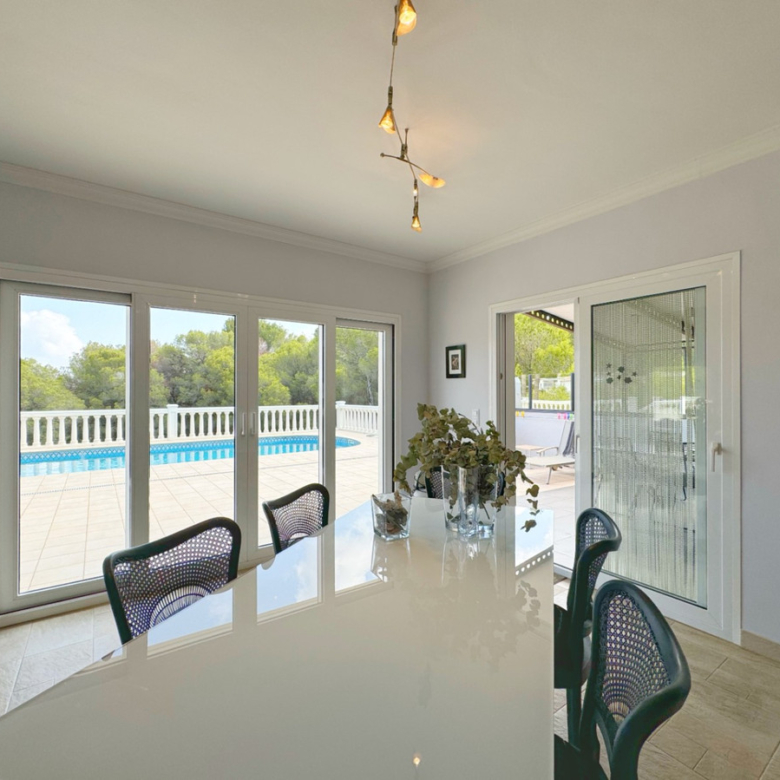 Desde el primer momento, te cautivará la privacidad que rodea esta villa. Rodeada de vegetación y con vistas espectaculares al Montgó, la propiedad se distribuye en dos plantas, cada una pensada para maximizar el disfrute de sus espacios amplios y luminosos.