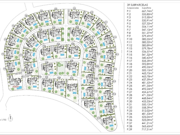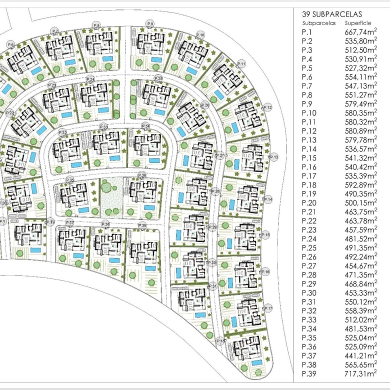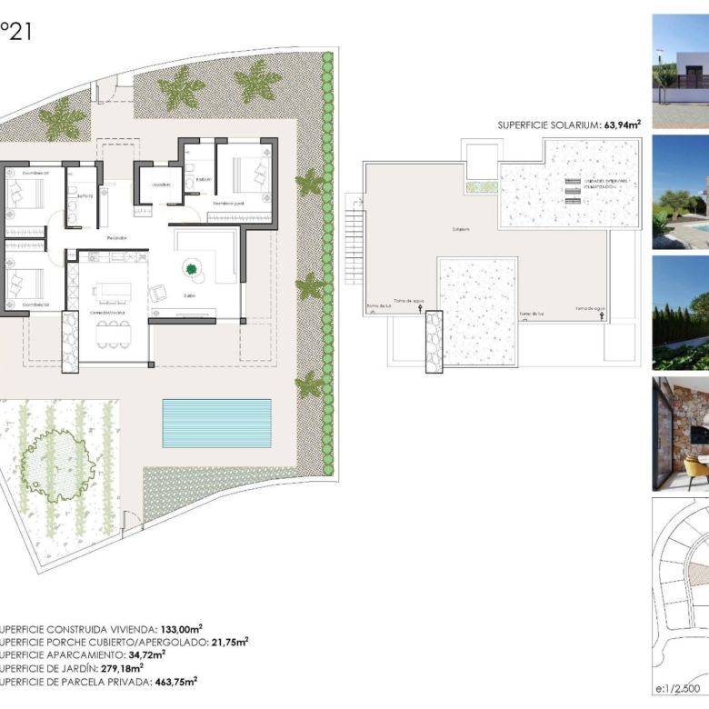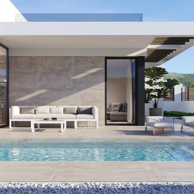 El residencial está compuesto por 39 villas en parcelas a partir de 436 m2. Todas las viviendas cuentan con 3 dormitorios y 2 baños completos en una sola planta, además de una zona de terraza con piscina privada y un solarium privado en la azotea con vistas al campo de golf.