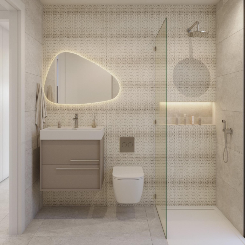 Baños con muebles, espejos y mamparas de ducha
