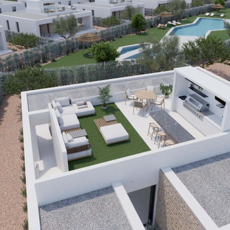 Cada propiedad ofrece una distribución espaciosa con 3 dormitorios y 2 baños en una sola planta. Solárium privado en azotea. Con parcelas a partir de 396 metros cuadrados y una superficie construida de 111 metros cuadrados, estas viviendas ofrecen un amplio espacio para la vida interior y exterior.