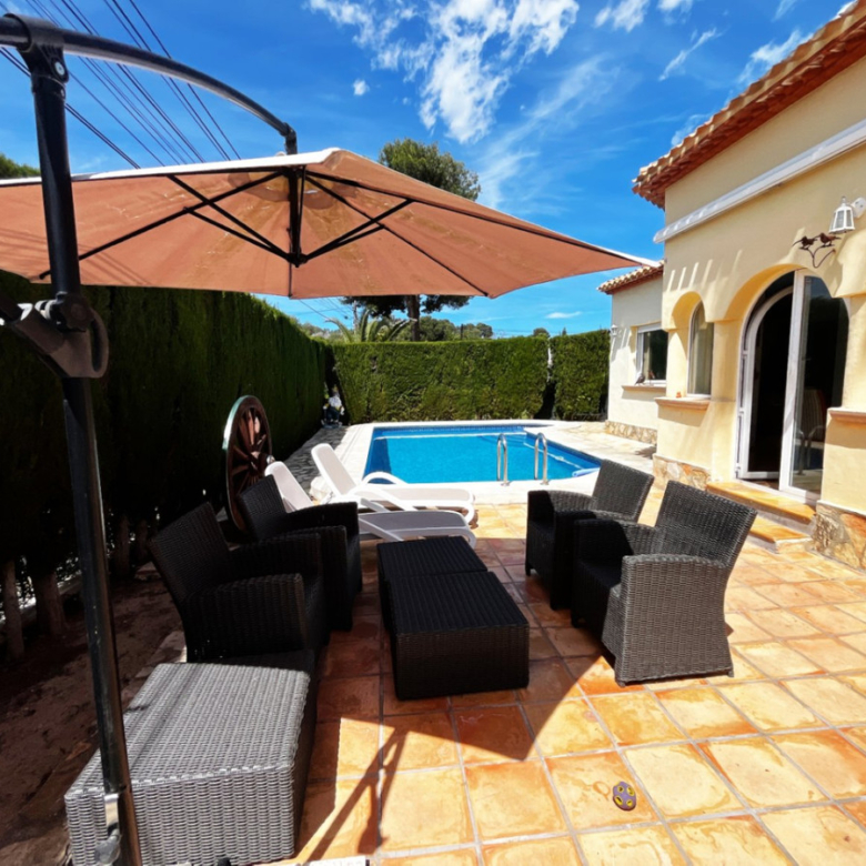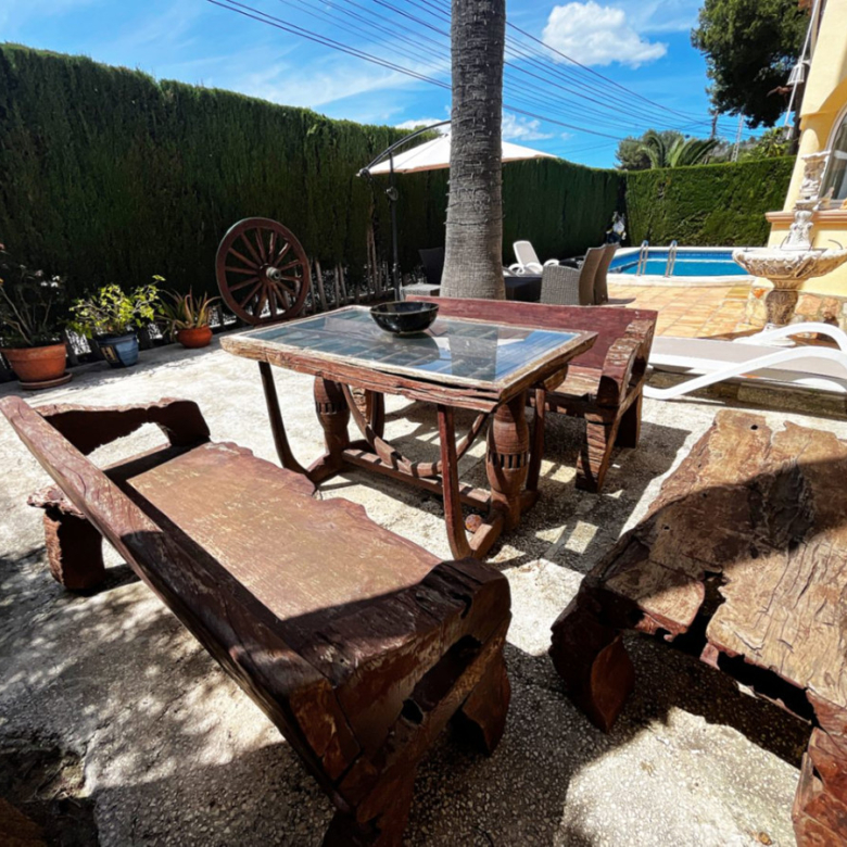 Se vende magnífica villa con pareado dividido en dos apartamentos totalmente independientes, ideal para inversores o familias que deseen generar rentabilidad o compartir espacio manteniendo la privacidad. La propiedad destaca por su gran piscina privada, zona de barbacoa, y parking con capacidad para al menos tres vehículos.