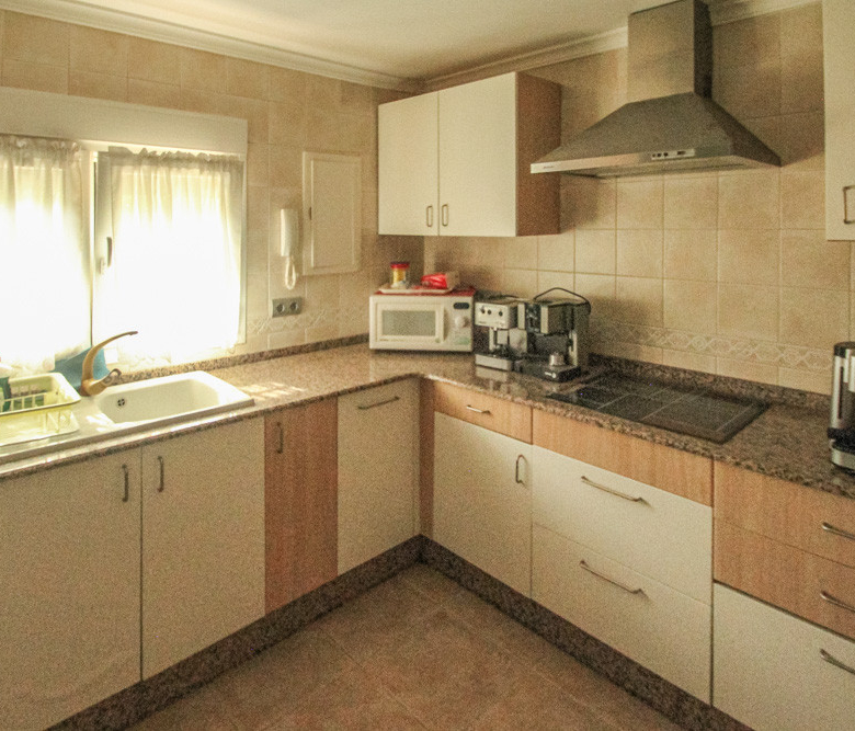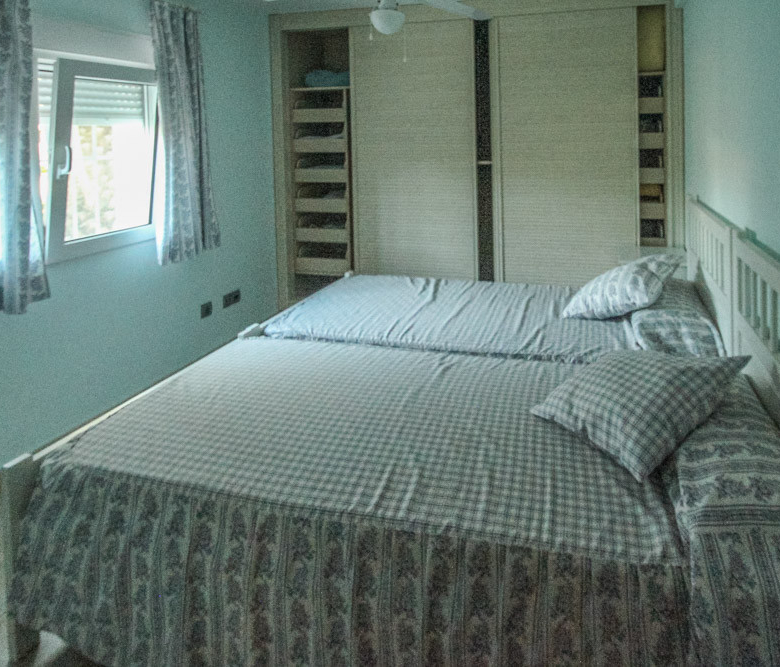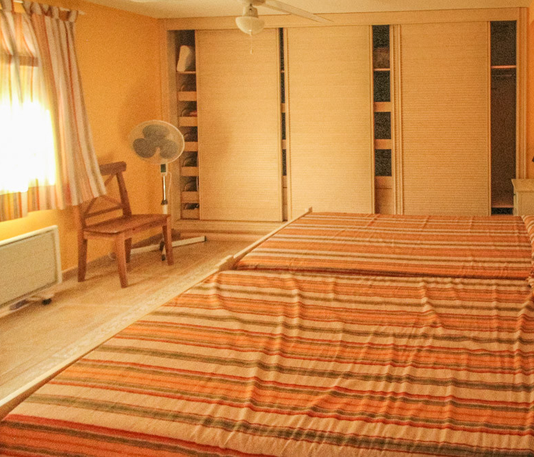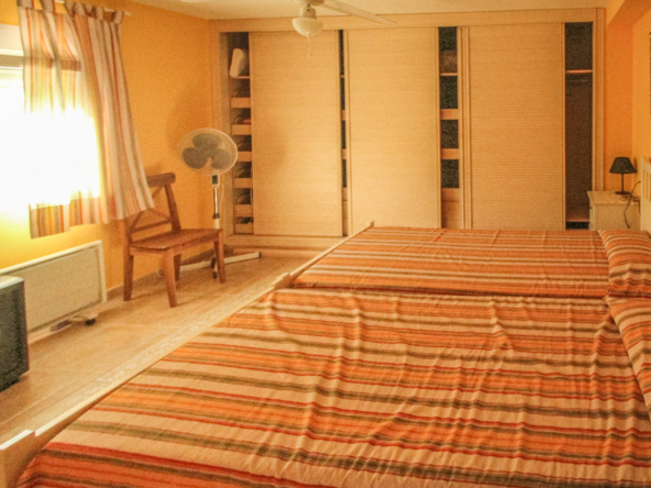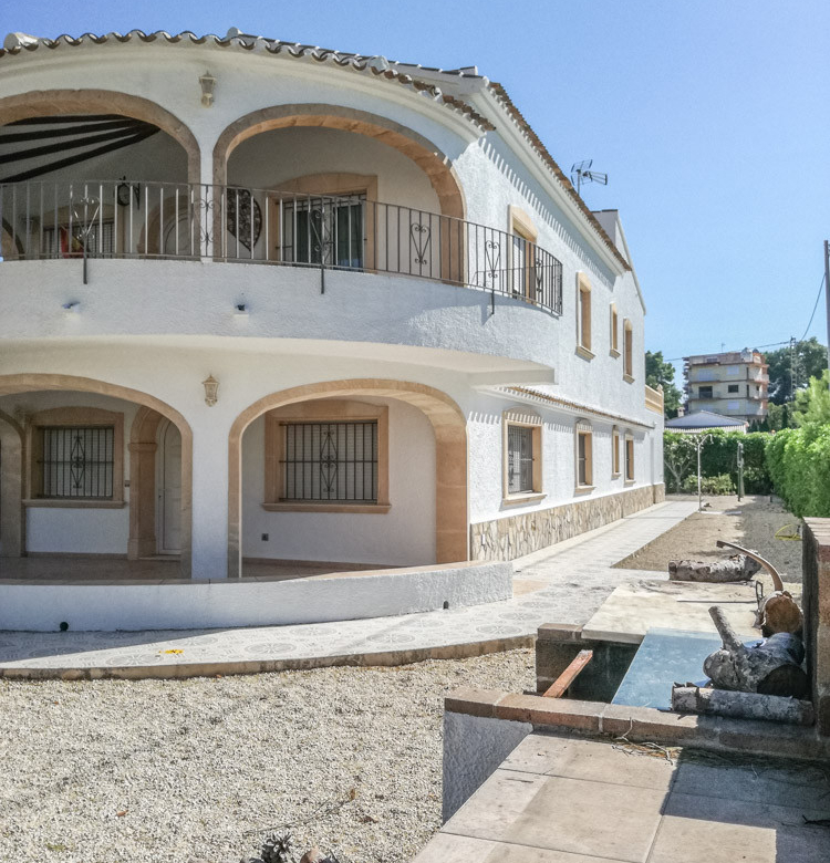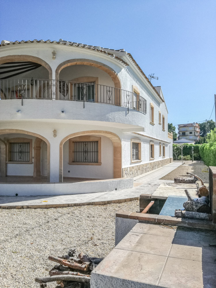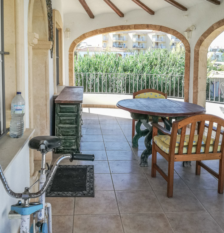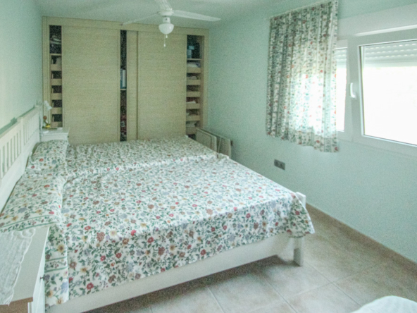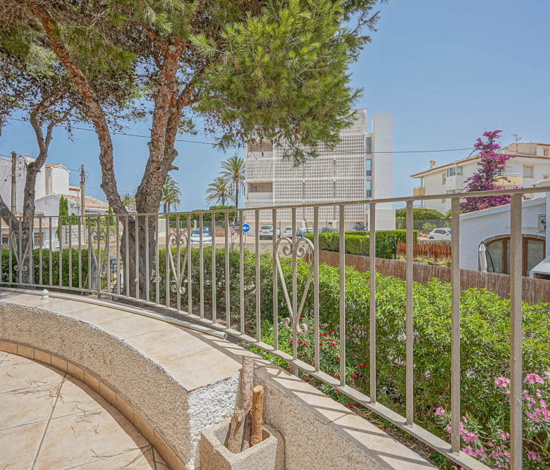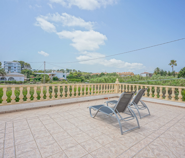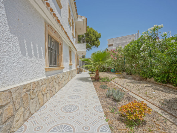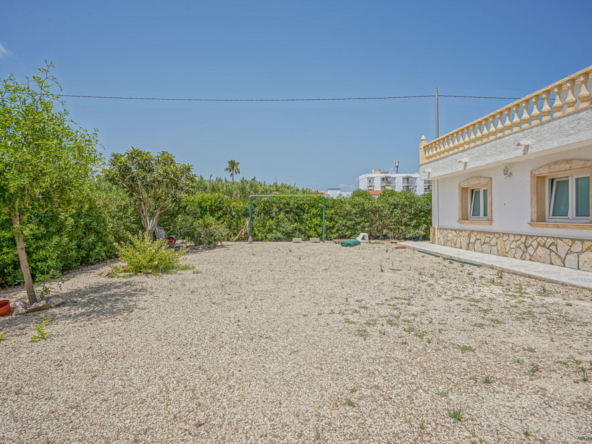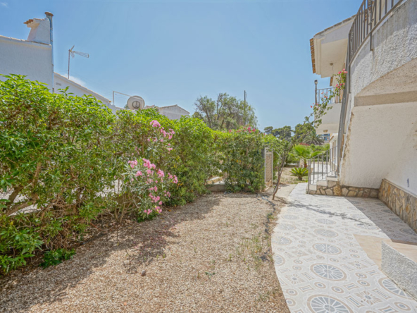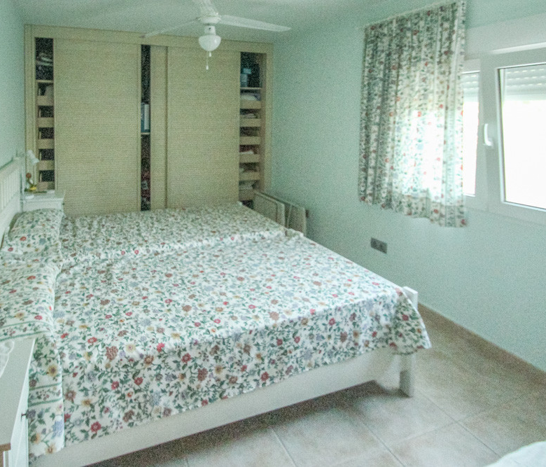 Esta gran villa está situada en una parcela llana de 1144 m2 a sólo 50 m de la hermosa playa de Cala Blanca. La villa está dividida en dos plantas casi idénticas. La planta baja consta de un salón-comedor, una cocina, tres dormitorios dobles, un baño y una terraza cubierta. La planta superior consta de un salón-comedor, una cocina, tres dormitorios dobles, dos baños, una terraza cubierta y un gran solarium de 40 m2 orientado al sur. También hay un garaje, una barbacoa, una ducha exterior, dos depósitos de agua de 16.000 litros para riego y acceso a un pozo comunal. La villa está rodeada por un jardín mediterráneo, con mucho espacio tanto en el lado sur como en el norte de la casa. En el lado norte hay varios pinos que, junto con la fresca brisa marina, hacen que nunca haga demasiado calor en la terraza cubierta. El lado sur, rodeado únicamente por un seto de flores y algunos árboles frutales, es ideal para disfrutar del sol en invierno o para instalar una piscina. La villa está a menos de 1,5 km de la playa de arena y del paseo marítimo del Arenal. Hay una farmacia y un colegio internacional a 300 m y un supermercado a 500 m. A sólo 100 m hay también un bar junto al mar.