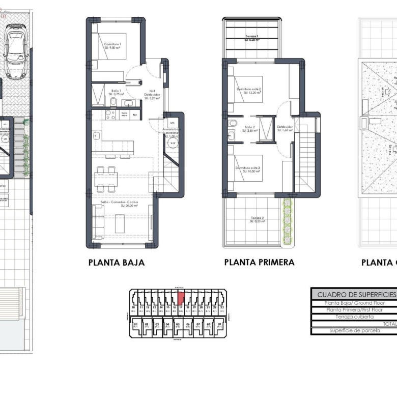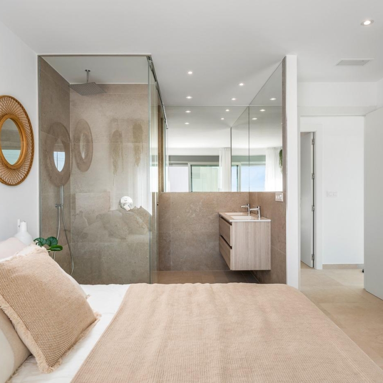 Villas de estilo ibicenco construidas en 2 plantas, dispone de 3 dormitorios, 2 baños, salón, cocina, terraza, zona de aparcamiento y piscina privada.