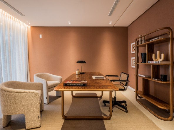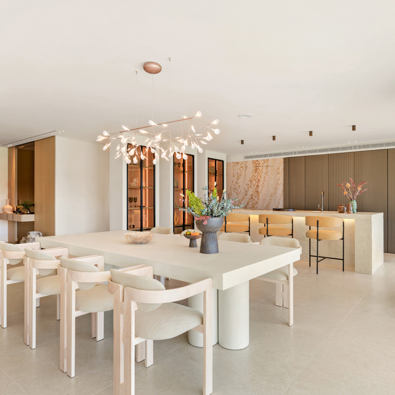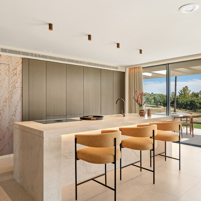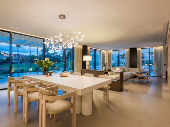 El interior de la villa está diseñado con un enfoque en el confort y la funcionalidad. Los suelos de gres porcelánico aportan un toque de elegancia y son fáciles de mantener. La villa está equipada con aire acondicionado, asegurando un ambiente agradable durante todo el año. Los armarios empotrados ofrecen un amplio espacio de almacenamiento, manteniendo el orden y la organización. La distribución incluye un garaje, proporcionando comodidad y seguridad para los vehículos. Cada uno de los cuatro dormitorios está diseñado para ofrecer privacidad y confort, mientras que los cinco baños aseguran que cada miembro de la familia tenga su propio espacio.