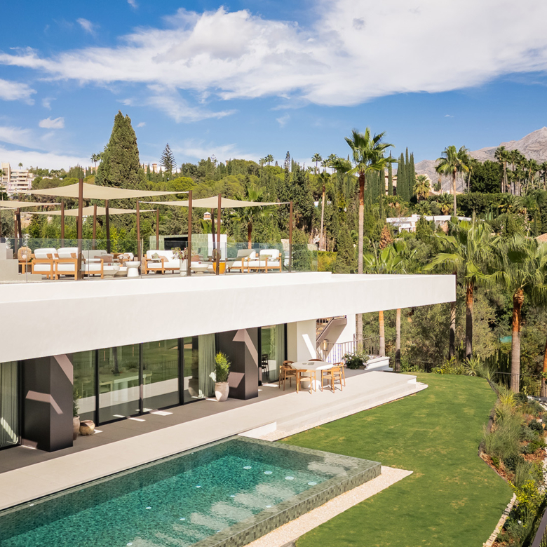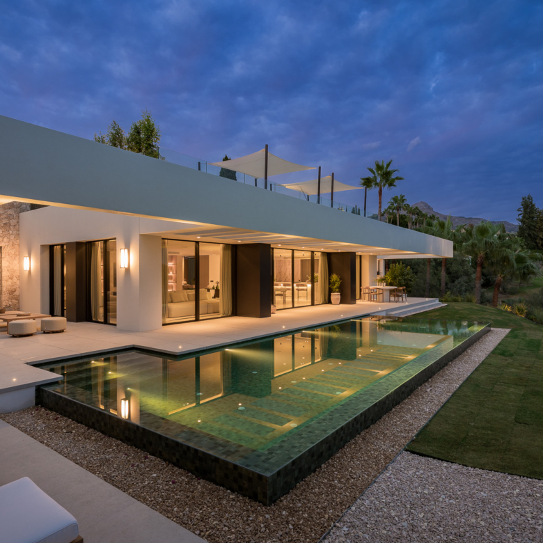 Ubicada en la prestigiosa zona de Marbella, esta exclusiva villa se encuentra en primera línea, ofreciendo un entorno de lujo y privacidad. Con un diseño arquitectónico moderno y elegante, esta propiedad destaca por su atención al detalle y su integración con el paisaje circundante. La villa es ideal para quienes buscan un hogar sofisticado en una de las áreas más codiciadas de la Costa del Sol. Con un total de cuatro dormitorios y cinco baños, esta residencia ofrece un espacio amplio y cómodo para toda la familia.