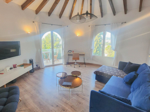 Descubra esta magnífica casa renovada en 2019, ubicada en una residencia privada sin vecinos directos, que ofrece vistas despejadas de los encantadores paisajes de Moraira. Esta propiedad combina confort, modernidad y serenidad, perfecta para disfrutar del estilo de vida mediterráneo.
