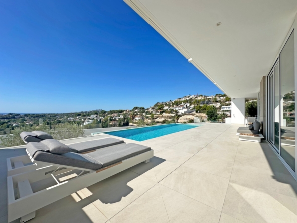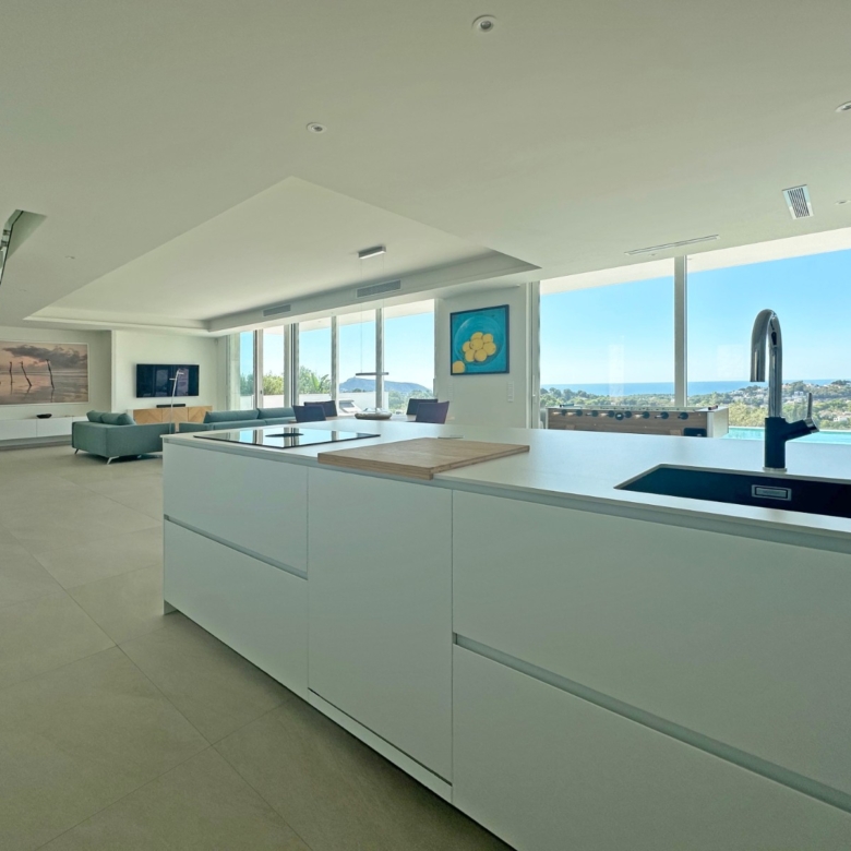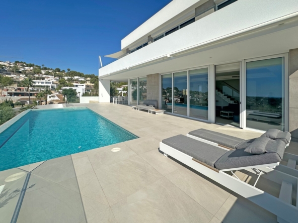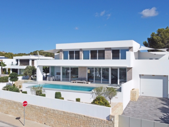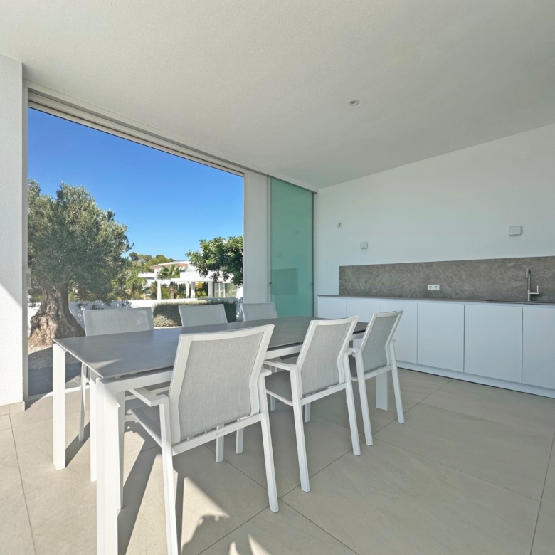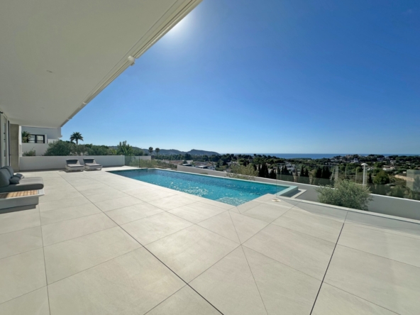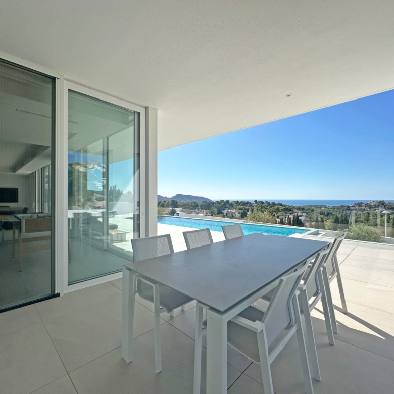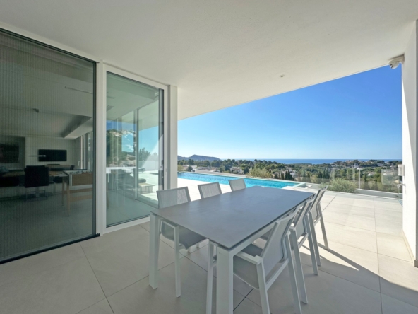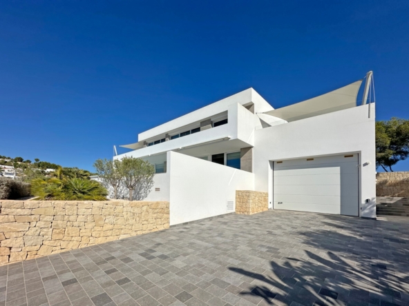 Descubra esta moderna villa en la mejor ubicación de Moraira - Benimeit con una vista espectacular al mar.Esta propiedad, construida en 2021, está equipada con las tecnologías más avanzadas y acabados de alta calidad para máximo confort