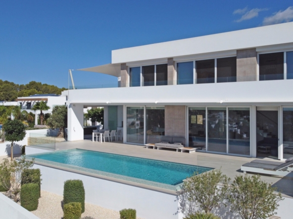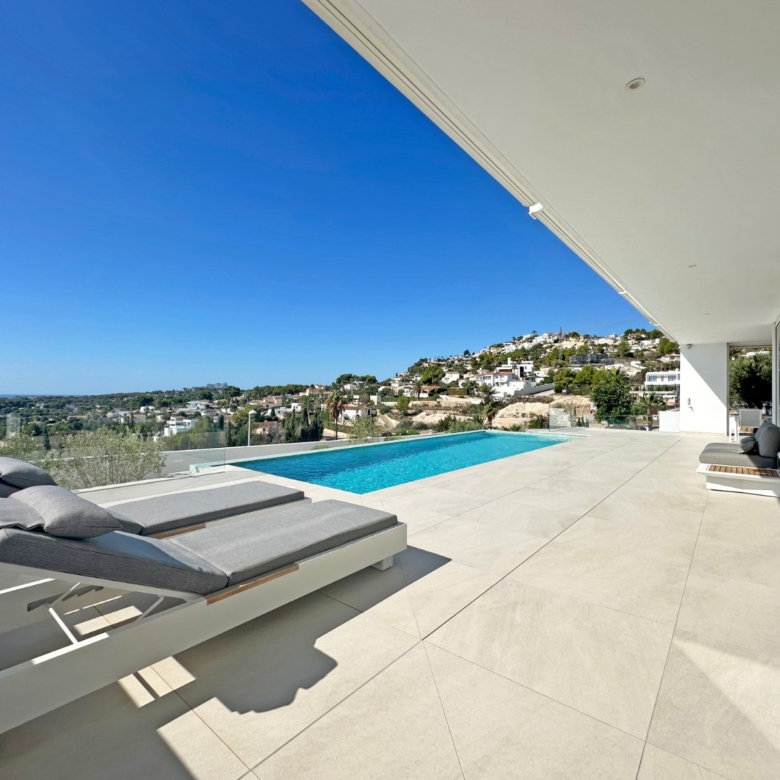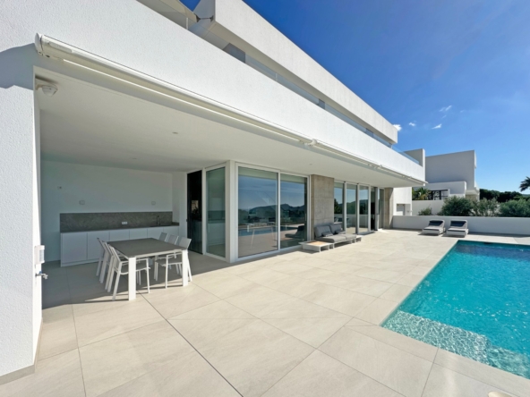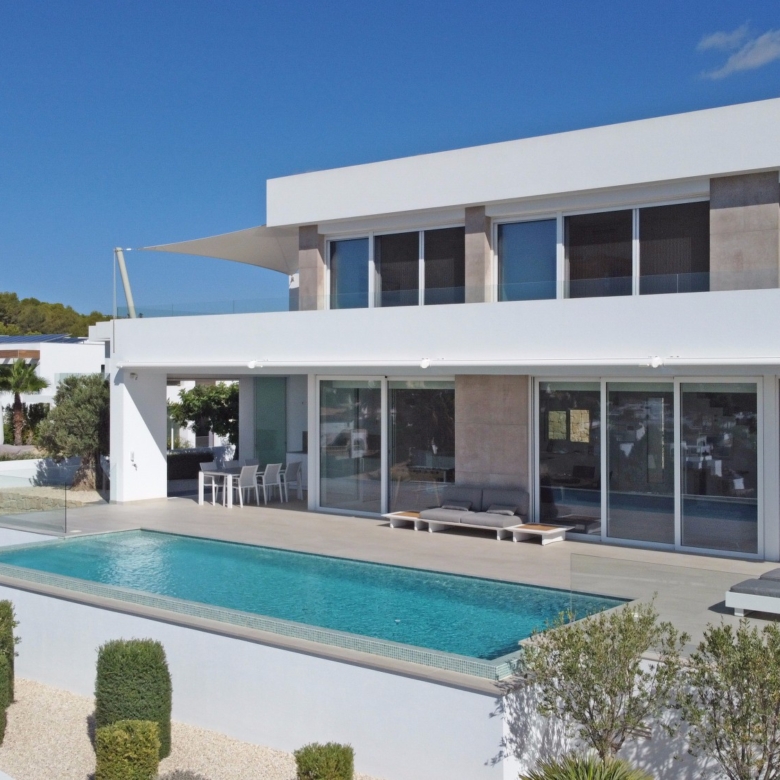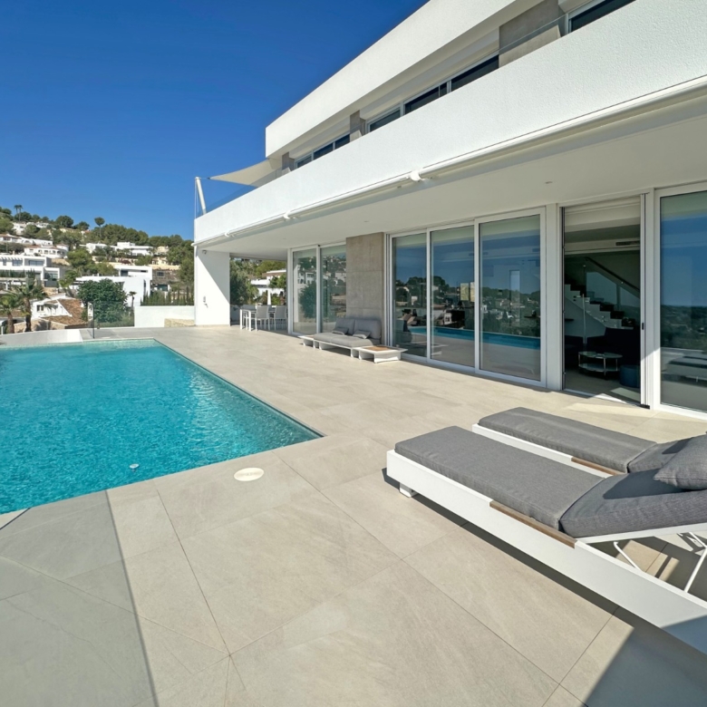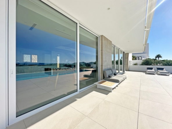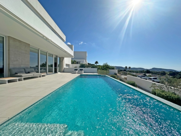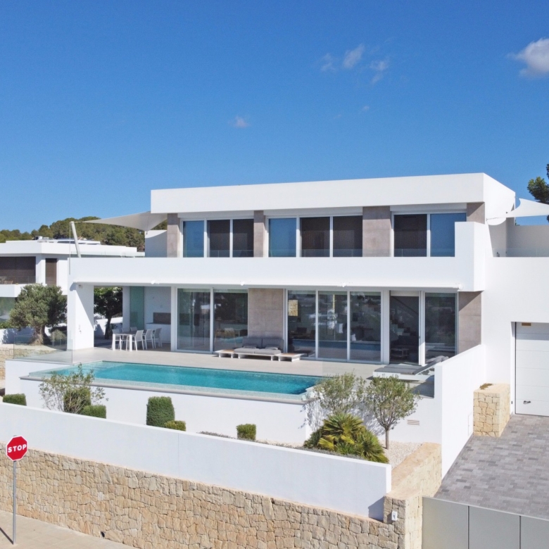 Descubra esta moderna villa en la mejor ubicación de Moraira - Benimeit con una vista espectacular al mar.Esta propiedad, construida en 2021, está equipada con las tecnologías más avanzadas y acabados de alta calidad para máximo confort