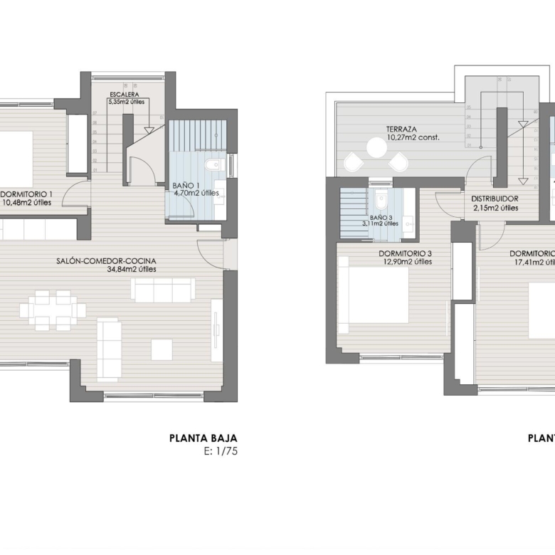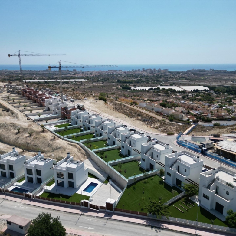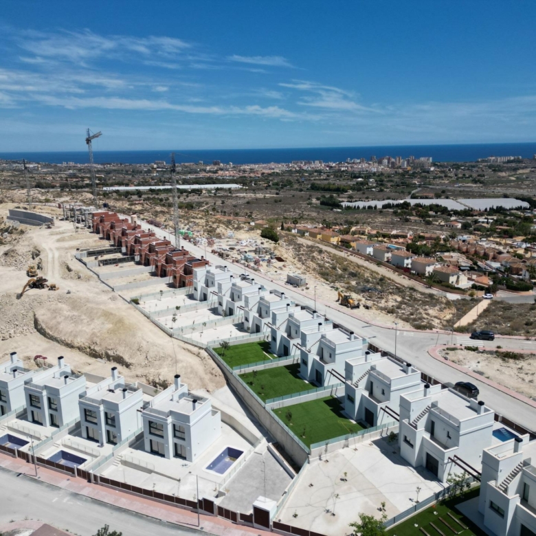 Las viviendas constan de 2 plantas y también se tiene acceso al solárium con estupendas vistas al mar. En amplias parcelas de alrededor de 550 m2. Su emplazamiento elevado brinda unas estupendas vistas abiertas a las montañas, a la ciudad de Alicante y al mar.