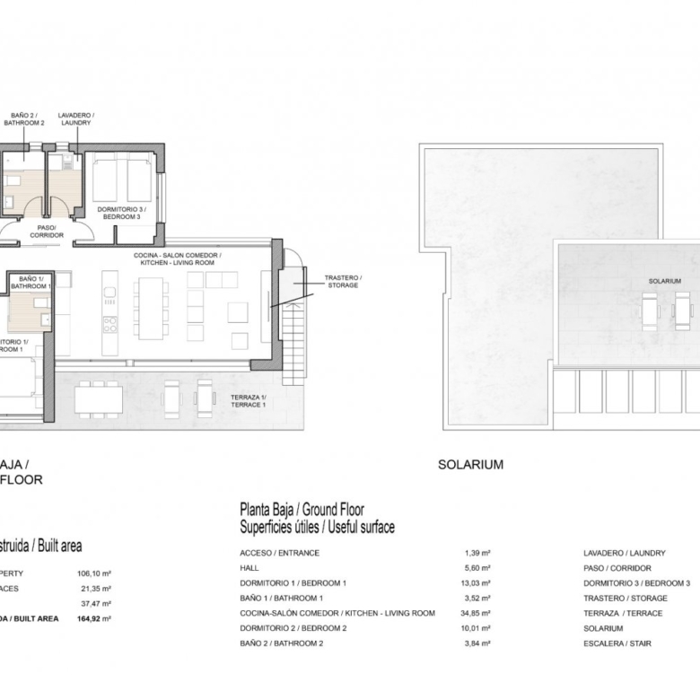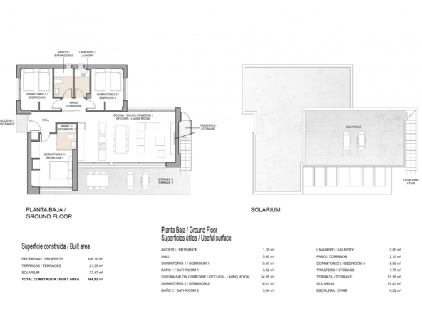Villas con 3 dormitorios, 2 baños, un salón abierto con la cocina, gran solarium, jardín con parkig y espacio para la piscina privada.