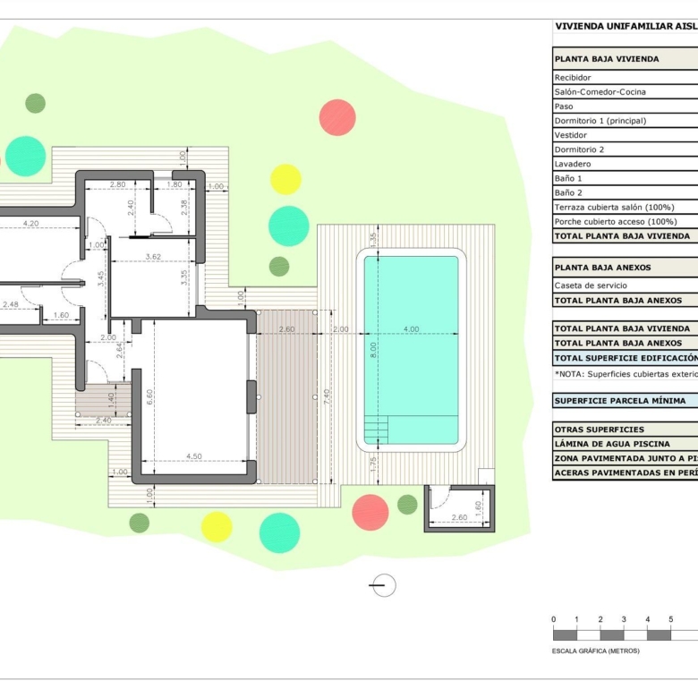 Cada propiedad se encuentra en una zona vallada de aproximadamente 2500 m² dentro de una parcela rústica de 10 000 m², lo que garantiza una gran privacidad y espacio. Las villas incluyen una piscina privada de 8 x 4 m, un porche, un trastero y un aparcamiento exterior privado.