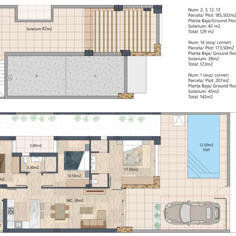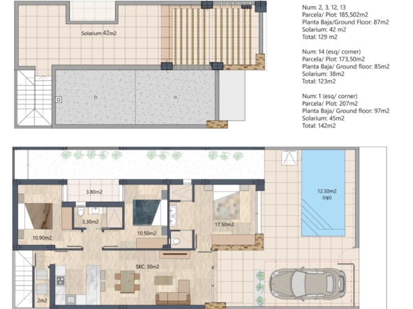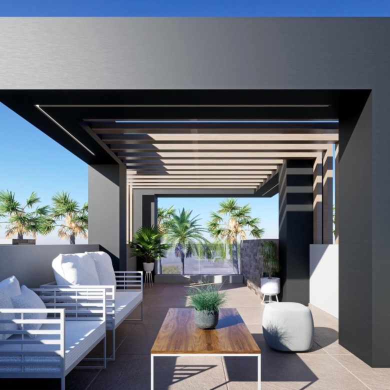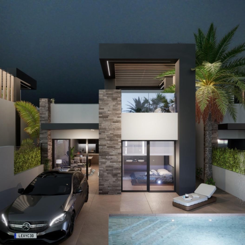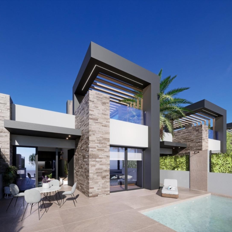 Las villas modernas tienen 3 dormitorios, 2 cuartos de baño, una sala de estar abierta y la cocina están todos en un nivel.