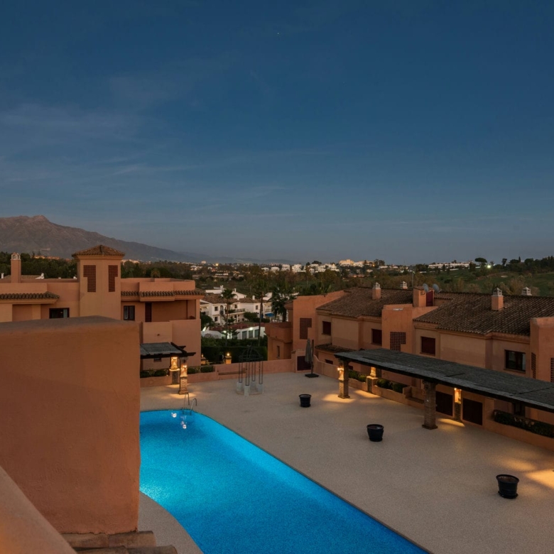 El diseño exterior de las propiedades en Benahavís se integra perfectamente con el entorno natural, ofreciendo un ambiente sereno y acogedor. Las terrazas, presentes en cada vivienda, proporcionan un espacio adicional al aire libre donde se puede disfrutar del clima mediterráneo y de las vistas al mar. Los jardines comunitarios están cuidadosamente mantenidos, ofreciendo un espacio verde donde relajarse y disfrutar de la naturaleza. Además, el residencial cuenta con un aparcamiento comunitario, asegurando comodidad y seguridad para los residentes y sus visitantes.