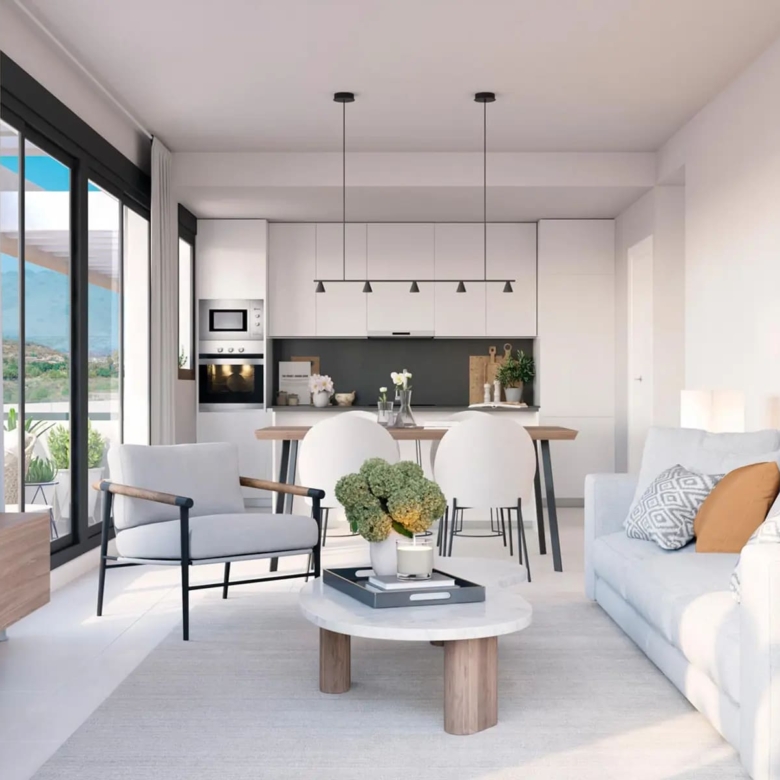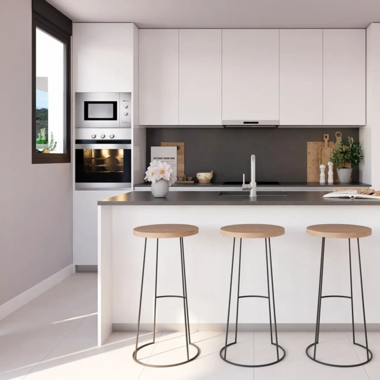 El interior de las viviendas está diseñado con atención al detalle y materiales de calidad. Los suelos de gres porcelánico aportan un toque moderno y elegante, mientras que los electrodomésticos integrados facilitan la vida diaria. Los armarios empotrados ofrecen un almacenamiento eficiente, manteniendo los espacios ordenados y funcionales. Las opciones de distribución incluyen 2, 3 o 4 dormitorios y 2 o 3 baños, permitiendo una personalización según las necesidades de cada residente.
