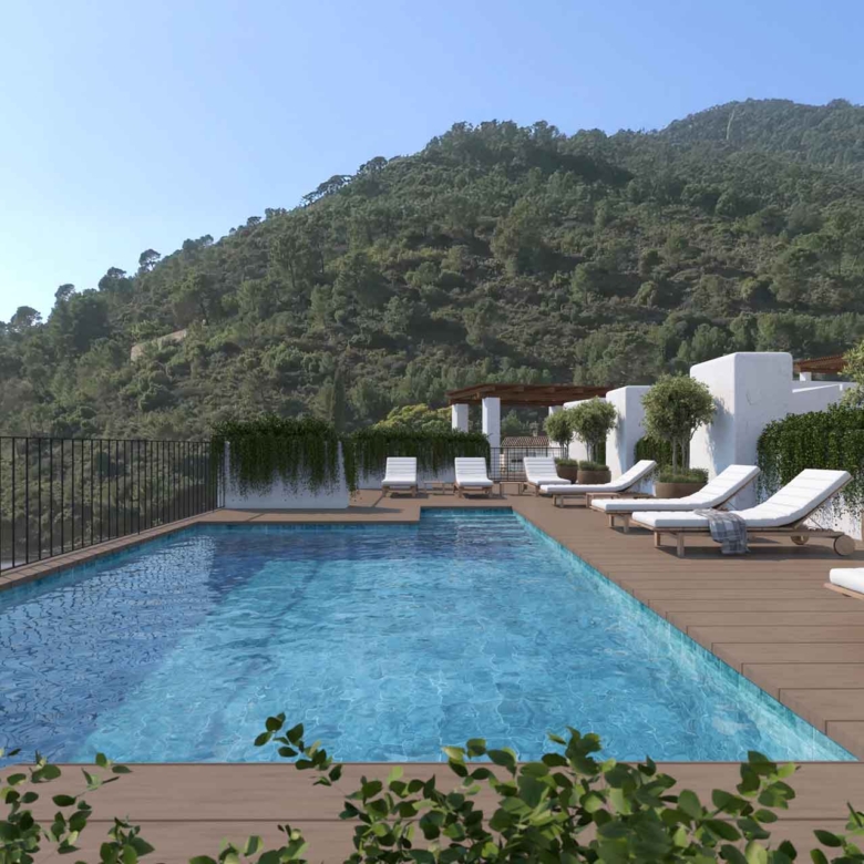 Les extérieurs de cette résidence à Benahavís sont conçus pour offrir un environnement relaxant et agréable. Chaque propriété dispose d’une terrasse privée, idéale pour profiter du climat méditerranéen et des moments en plein air. De plus, les logements en rez-de-chaussée ont un accès direct aux zones paysagées, offrant un espace supplémentaire pour les loisirs et la détente. Le solarium est un autre atout, offrant un lieu parfait pour bronzer ou profiter des vues sur l’environnement naturel qui entoure le complexe.