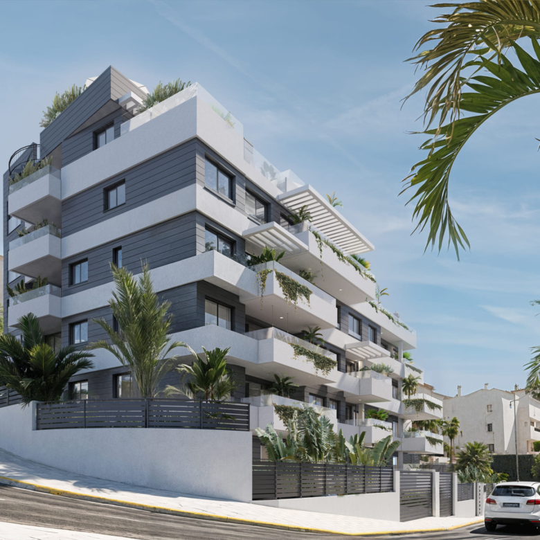 Les extérieurs de ces propriétés sont pensés pour offrir un espace de plaisir et de détente. Chaque logement dispose d’une terrasse privée, idéale pour profiter de la vue sur la mer et du climat doux de la Costa del Sol. De plus, certaines typologies incluent un solarium, parfait pour bronzer en toute intimité. Les jardins privés, lorsqu’ils sont présents, ajoutent une touche de nature et de fraîcheur à l’environnement, créant un oasis personnel pour chaque résident.