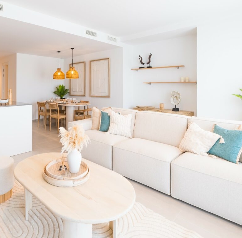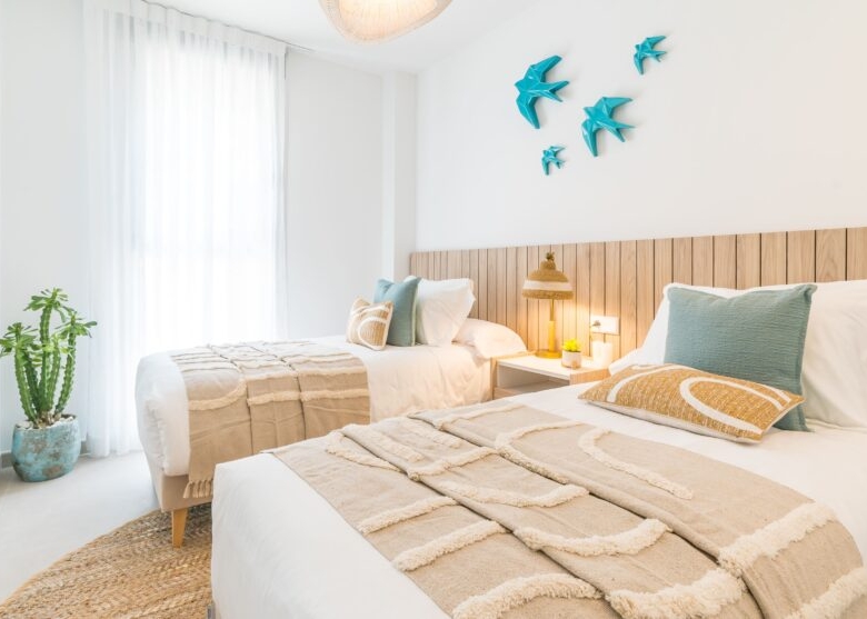 Le design extérieur de cette résidence à Estepona est pensé pour compléter l’environnement naturel et offrir des espaces extérieurs invitant à la détente et au plaisir. Les propriétés disposent de terrasses privées, parfaites pour profiter des vues et du climat méditerranéen. De plus, certains types incluent un solarium, offrant un espace supplémentaire pour les loisirs en plein air. Les jardins communautaires sont soigneusement conçus pour offrir un environnement vert et serein, idéal pour des promenades tranquilles ou des moments de repos. La proximité de la mer, à seulement 2 kilomètres, ajoute un attrait supplémentaire pour les amateurs de plage et d’activités nautiques.