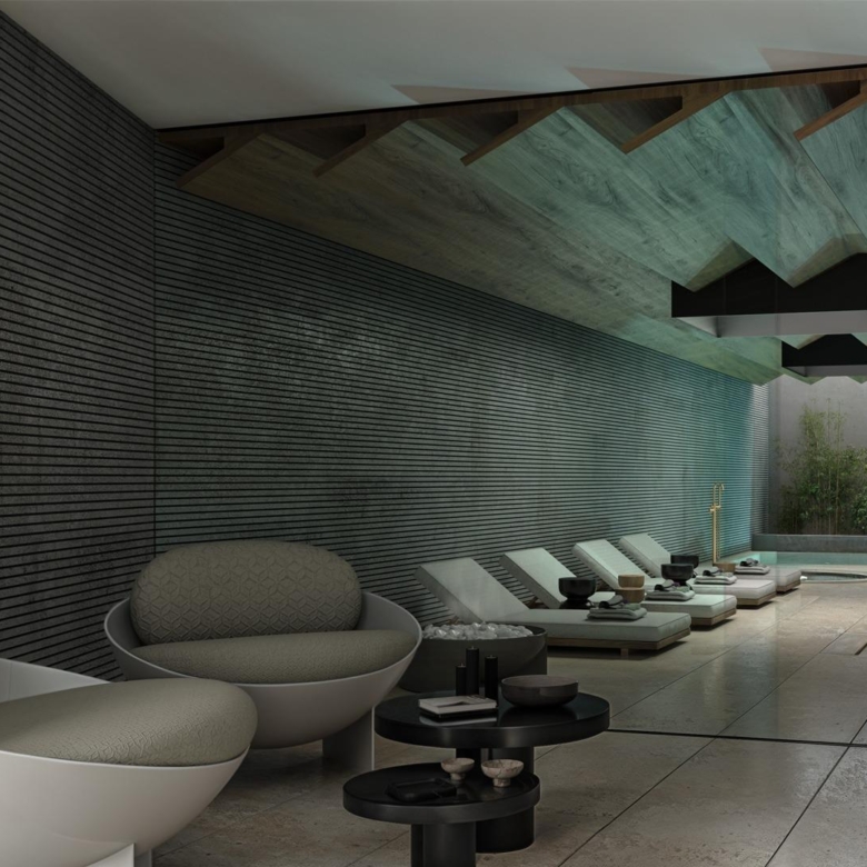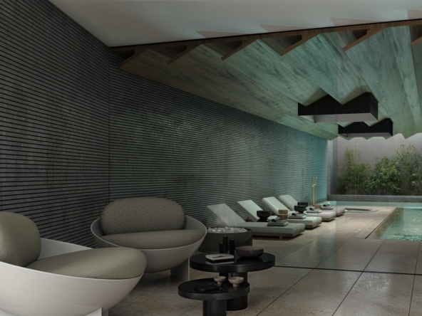 Un quartier résidentiel de luxe, composé d’un élégant volume architectural de conception contemporaine, qui intègre des espaces récréatifs paysagers avec une piscine communautaire (intérieure et extérieure), une salle de sport, un spa, un espace de coworking, un cinéma, un parking et une salle de stockage.