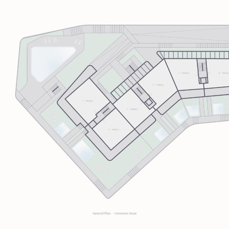 Les maisons au rez-de-chaussée disposent d’un jardin et d’une piscine privée en option, et les penthouses d’un solarium et d’une piscine sur le toit.