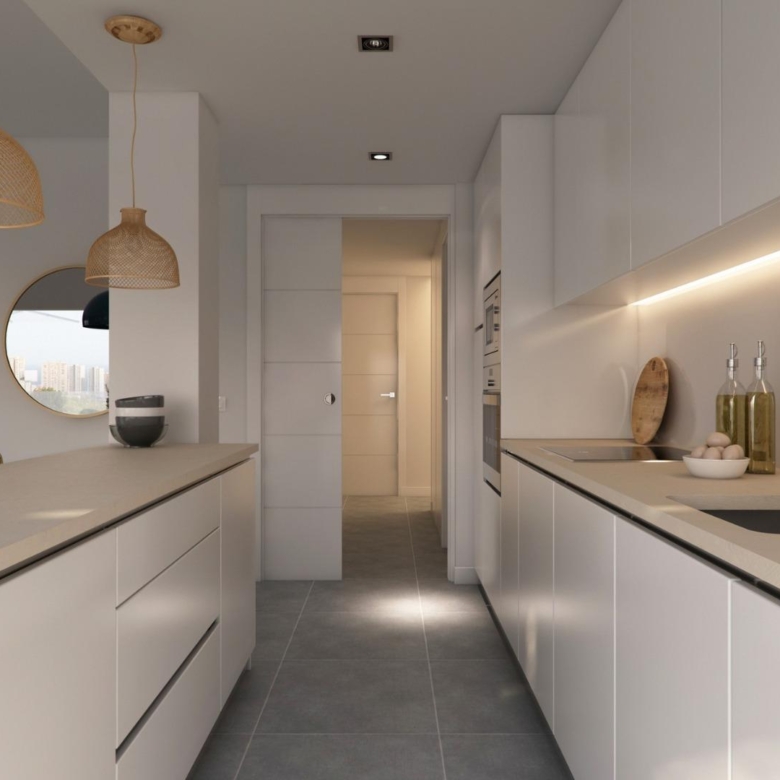 Complexe de luxe fermé avec des zones communes, des vues sur la mer et l’horizon de Benidorm, situé à quelques kilomètres de la vie animée de la plage, du centre commercial et des plages de sable.