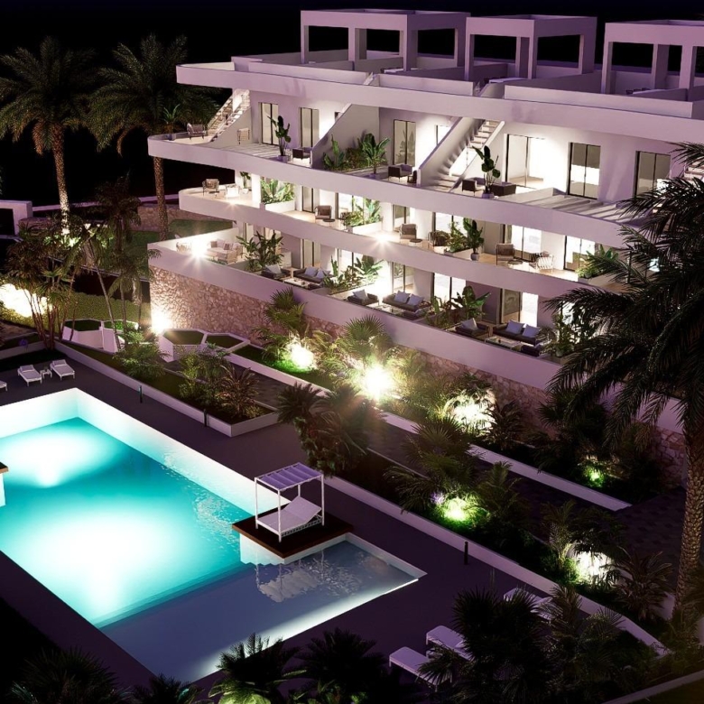 Ce complexe d’appartements modernes avec 2 chambres, 2 salles de bains, cuisine ouverte sur le salon. Certains appartements auront une vue sur la mer.