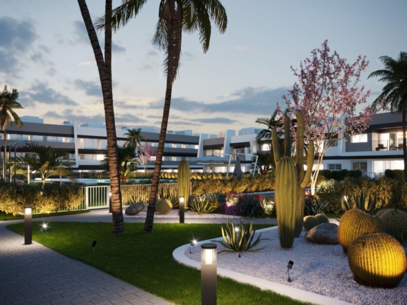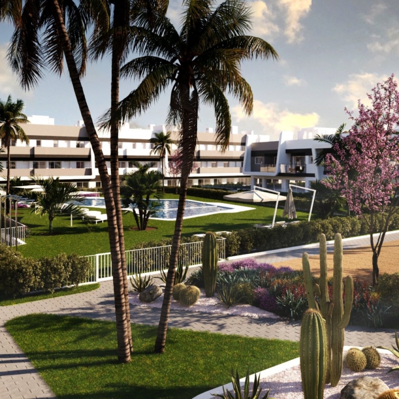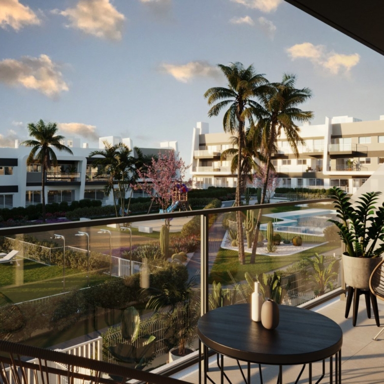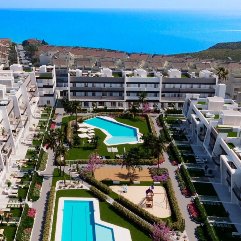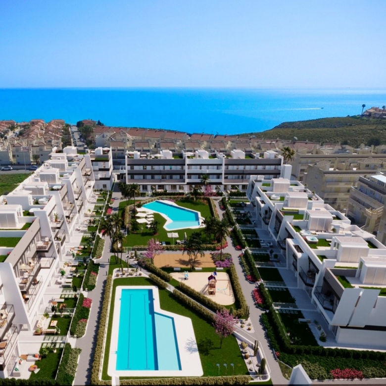 Ces nouveaux appartements sont construits selon des normes très élevées et forment une belle résidence avec des piscines, un parking souterrain privé, un cellier, des zones de jardin et une aire de jeux pour les enfants.