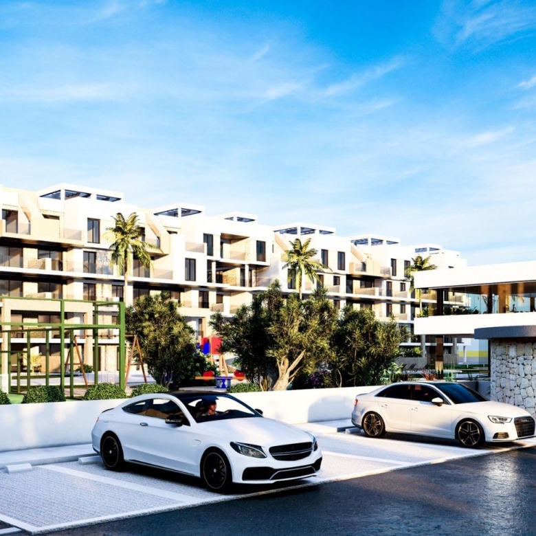 De beaux complexes résidentiels, dont un espace GYM-Spa vitré avec vue sur les espaces verts, les piscines et depuis sa terrasse surplombant la lagune salée de La Mata, un court de paddle tennis, etc.