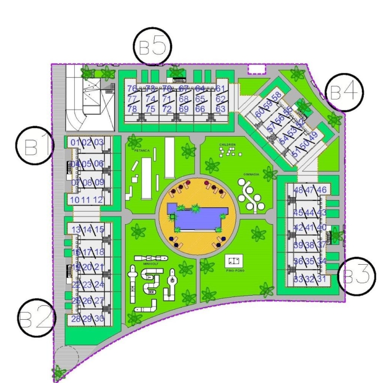 Les espaces communs comprendront une piscine, une salle de réception/réunion, un gymnase extérieur, un terrain de pétanque, un mini-golf et un spa.