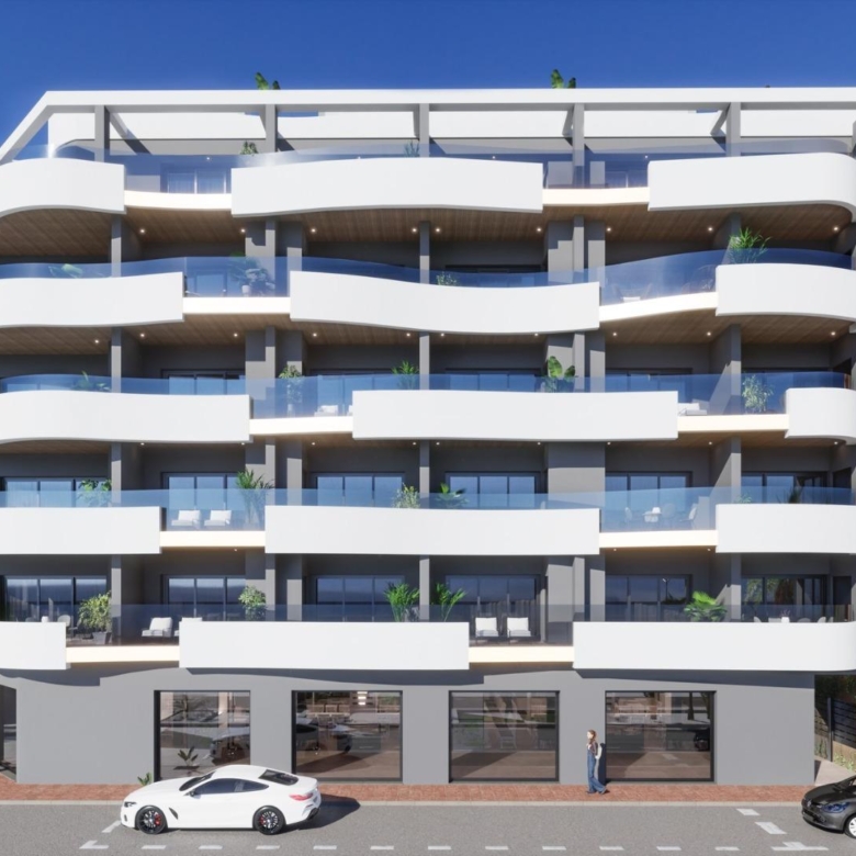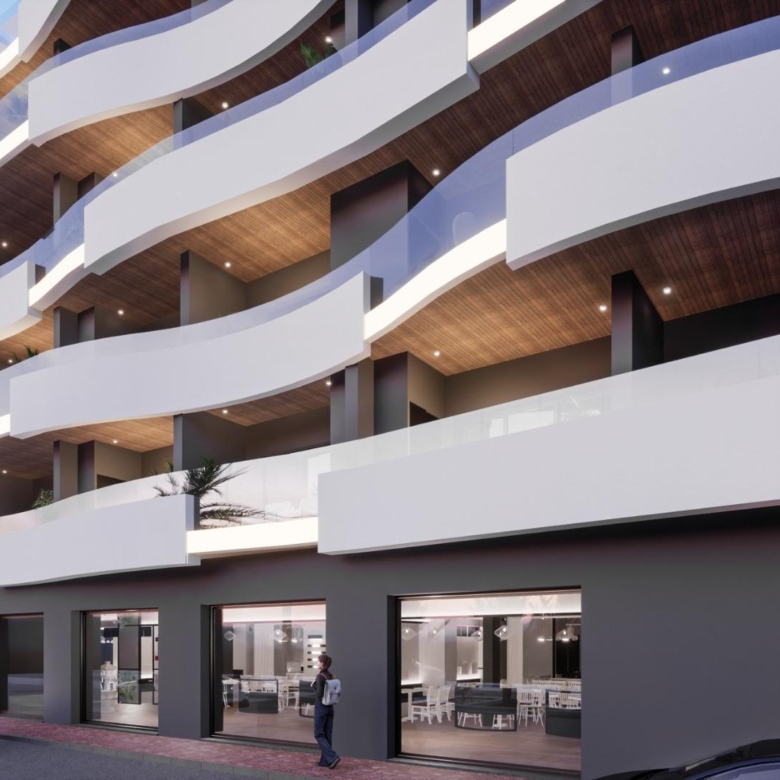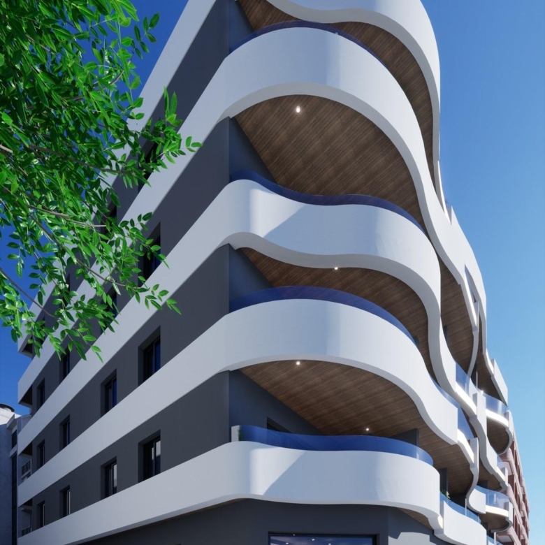 New Build avant-garde design développement de cinq étages à Torrevieja avec 34 propriétés exclusives offre une variété d’options de vie, des appartements élégants aux penthouses avec des vues panoramiques à couper le souffle.