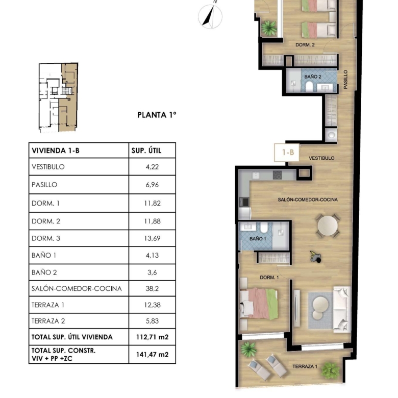 Les propriétés modernes ont 3 chambres à coucher, 3 salles de bains, une cuisine ouverte sur le salon, des salles de bains chauffées, des terrasses spacieuses, des armoires et des cuisines entièrement équipées.
