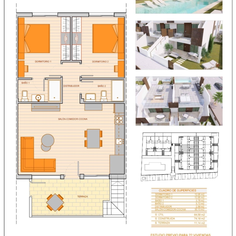 Nouvelle construction d’un complexe résidentiel exclusif composé de 22 appartements de plain-pied de qualité supérieure avec des finitions PORCELANOSA à Pilar de la Horadada.