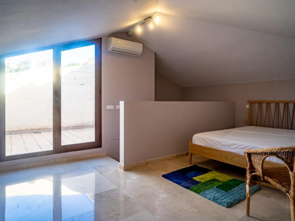 Au deuxième étage, un espace polyvalent peut être utilisé comme chambre supplémentaire ou bureau, avec un accès à une terrasse privée idéale pour profiter du soleil en toute tranquillité.