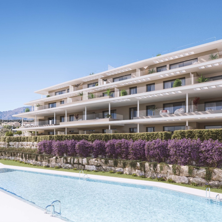Les extérieurs de ces logements sont conçus pour tirer le meilleur parti du climat méditerranéen d’Estepona. De nombreuses propriétés disposent de terrasses privées, idéales pour profiter des vues sur la mer et de l’environnement naturel. De plus, certains types incluent un solarium, offrant un espace extérieur supplémentaire pour se détendre ou socialiser. Les rez-de-chaussée offrent l’avantage d’avoir des jardins privés, parfaits pour ceux qui recherchent un espace vert personnel. L’emplacement à seulement 2 km de la mer permet de profiter de promenades côtières et d’activités de plein air, faisant de ce résidentiel une option attrayante pour les amoureux de la nature et de la mer.