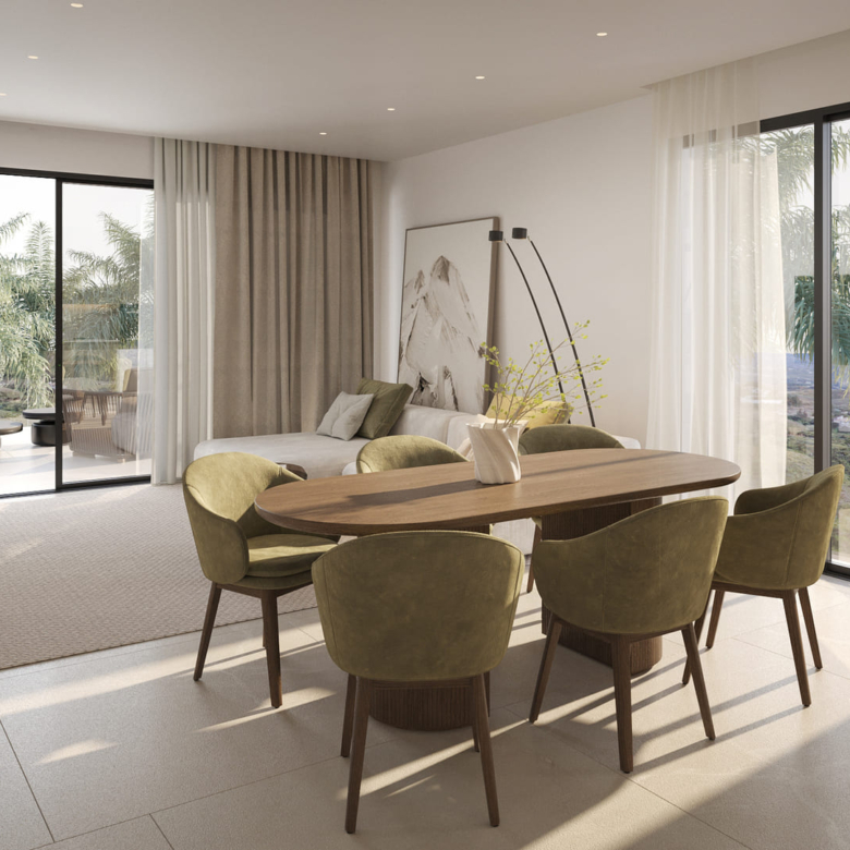 Les extérieurs de ces propriétés sont conçus pour maximiser le plaisir du climat méditerranéen. Chaque résidence dispose d’un jardin privé, idéal pour des moments de détente en plein air ou pour profiter de réunions familiales. De plus, les terrasses spacieuses offrent un espace supplémentaire pour contempler les vues et profiter de dîners en plein air. Pour ceux qui recherchent un espace plus exclusif, le solarium se présente comme un lieu parfait pour bronzer en toute intimité. La proximité de la mer, à seulement 1 km, permet de profiter de promenades sur la plage et d’activités nautiques.